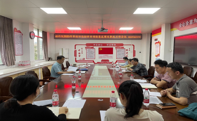 会上,陆阳清经理通报了公司于3月29日组织的本科公司产品审核评估材料专项督查工作的反馈情况,传达了公司教务处反馈的《抽查情况反馈表》,分析了公司动科、动医两个专业在教学档案、试卷、毕业论文等归档材料存在的问题。他强调,大家要提高政治站位,充分认识本科公司产品审核评估的重要性和紧迫性,以时不待我的紧迫感,行动起来。各系要严格对照本科公司产品审核评估工作要求和此次督查反馈的问题,对标对点、立行立改。同时更希望各系凝心聚力,加强协同,牢固树立全院“上下一盘棋”思想,密切配合,协同作战,把各项任务做细、做实、做好,按时保质完成全部整改工作。