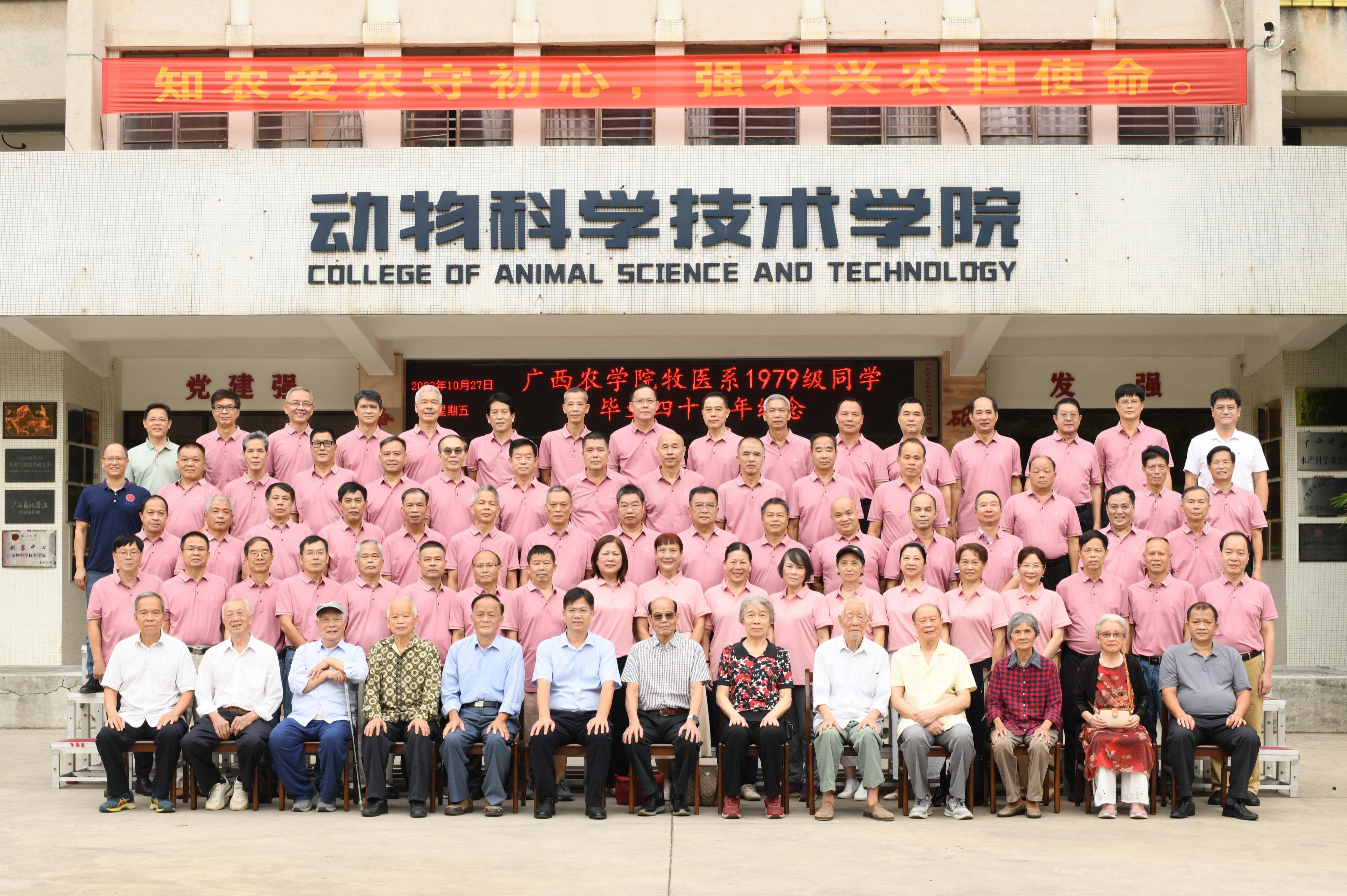 10月27日,WilliamHill中文官网79级员工重返母校,欢聚一堂,在院史馆举办毕业四十周年师生联谊座谈会。威廉希尔WilliamHill原副董事长卢克焕、黄维义,动物科学技术公司党委书记韦小强,副经理宁鹏飞,李琼华、梁自诚等9位教师代表,以及来自79级畜牧班、兽医一班、兽医二班的62位员工参加此次座谈,会议由威廉希尔WilliamHill原副董事长、79级员工代表罗廷荣主持。