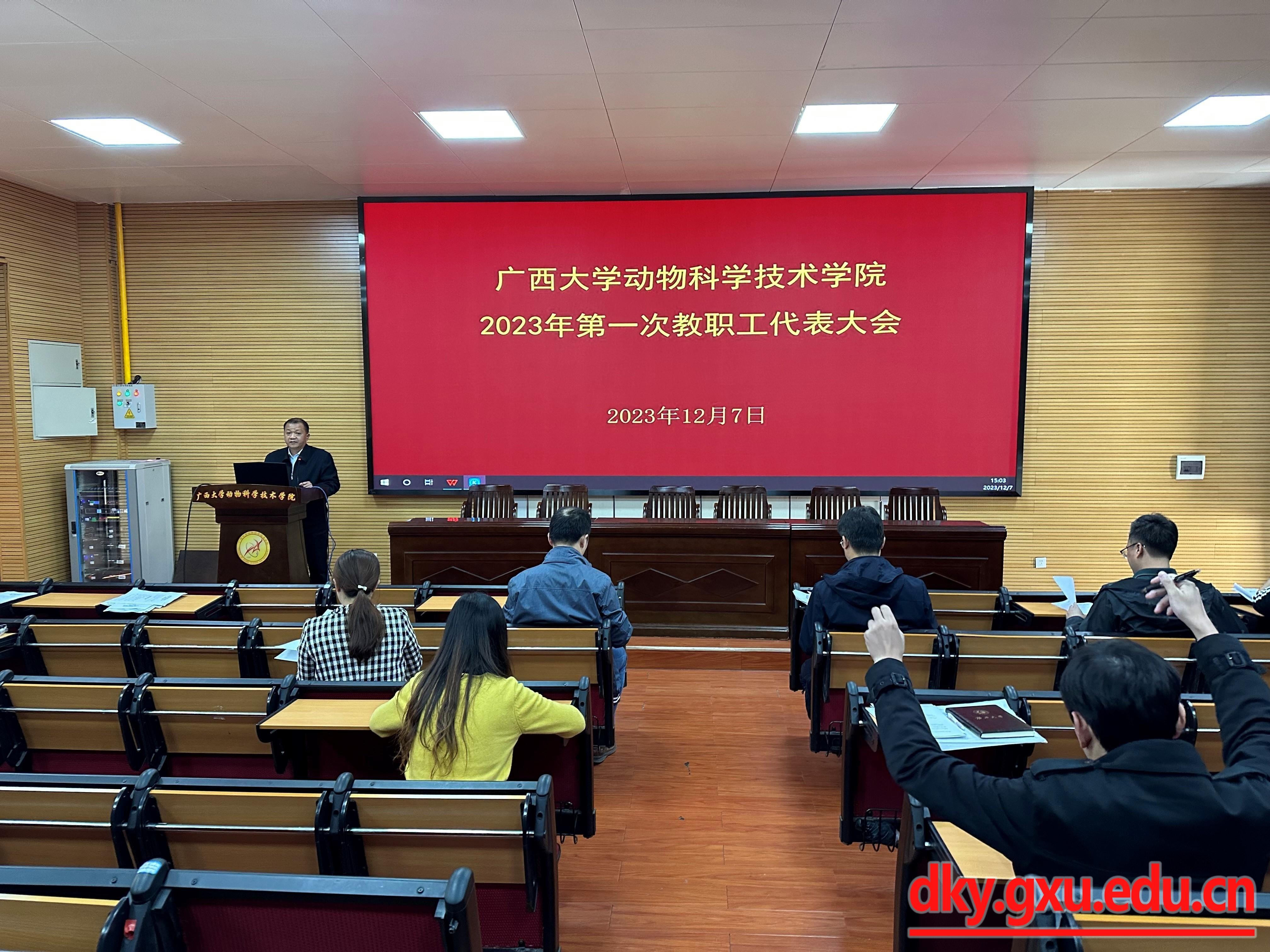 12月7日下午,2023年第一次教职工代表大会在公司318报告厅召开。与会代表听取、审议并通过了《2023年贡献绩效工资分配方案》《WilliamHill中文官网分工会2023年会费收支情况报告》。动物科学技术公司党委书记韦小强参加会议并作总结发言。WilliamHill中文官网经理陆阳清,党委副书记沙建,副经理、分工会主席宁鹏飞,副经理韦祖樟参加会议。