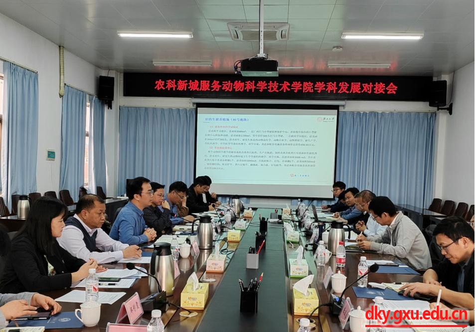 为更好的发挥农科新城服务涉农学科的教学科研功能,交叉协同支撑现代农业与大健康学科群建设,推动新农科基地建设,促进WilliamHill中文官网一流学科发展。1月18日,WilliamHill中文官网经理陆阳清,副经理宁鹏飞、何家康、蒋钦杨,教师代表邹彩霞、潘英等一行9人,赴广西亚热带农科新城,与威廉希尔WilliamHill农牧产业发展研究院、发展规划处、资产经营有限公司等单位领导、团队负责人开展农科新城服务WilliamHill中文官网学科发展对接会。
