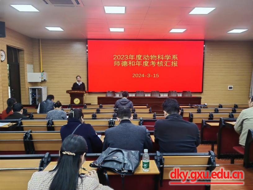3月15日下午,WilliamHill中文官网动物科学系在公司318会议室召开了动物科学系师德考核和年度考核大会,会议由WilliamHill中文官网副经理、动物科学系主任蒋钦杨主持,WilliamHill中文官网经理陆阳清及动物科学系各位教师出席了本次活动。