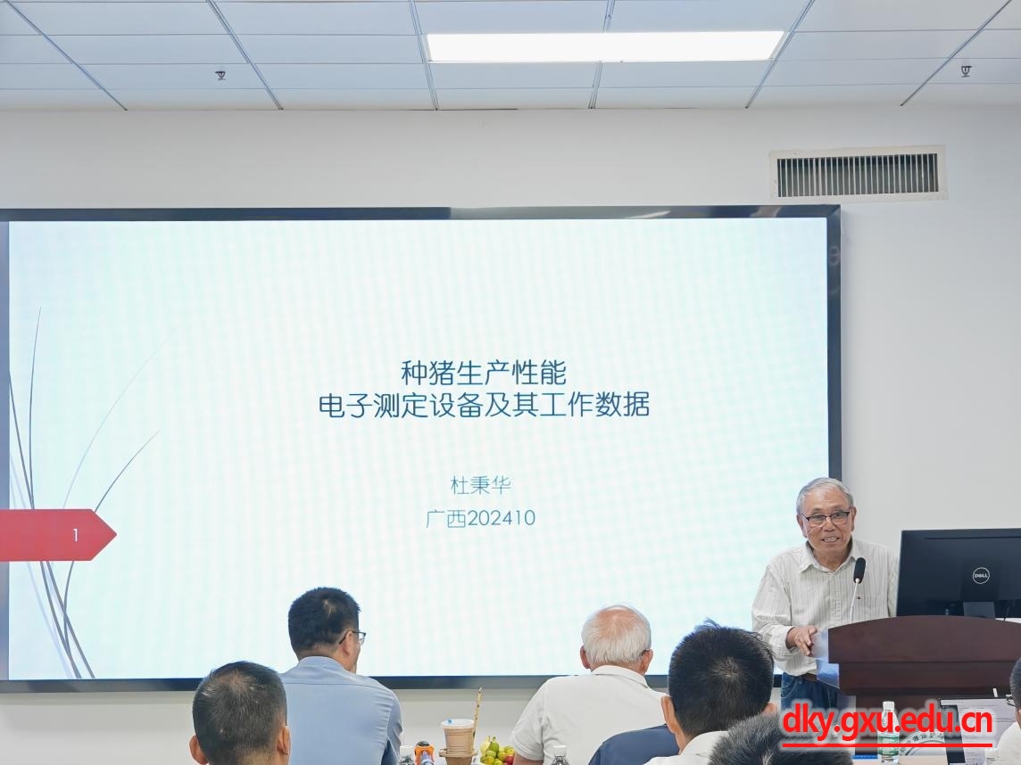 广西畜禽品种改良站种猪性能测定中心常务副主任、正高级畜牧师唐荣福做报告