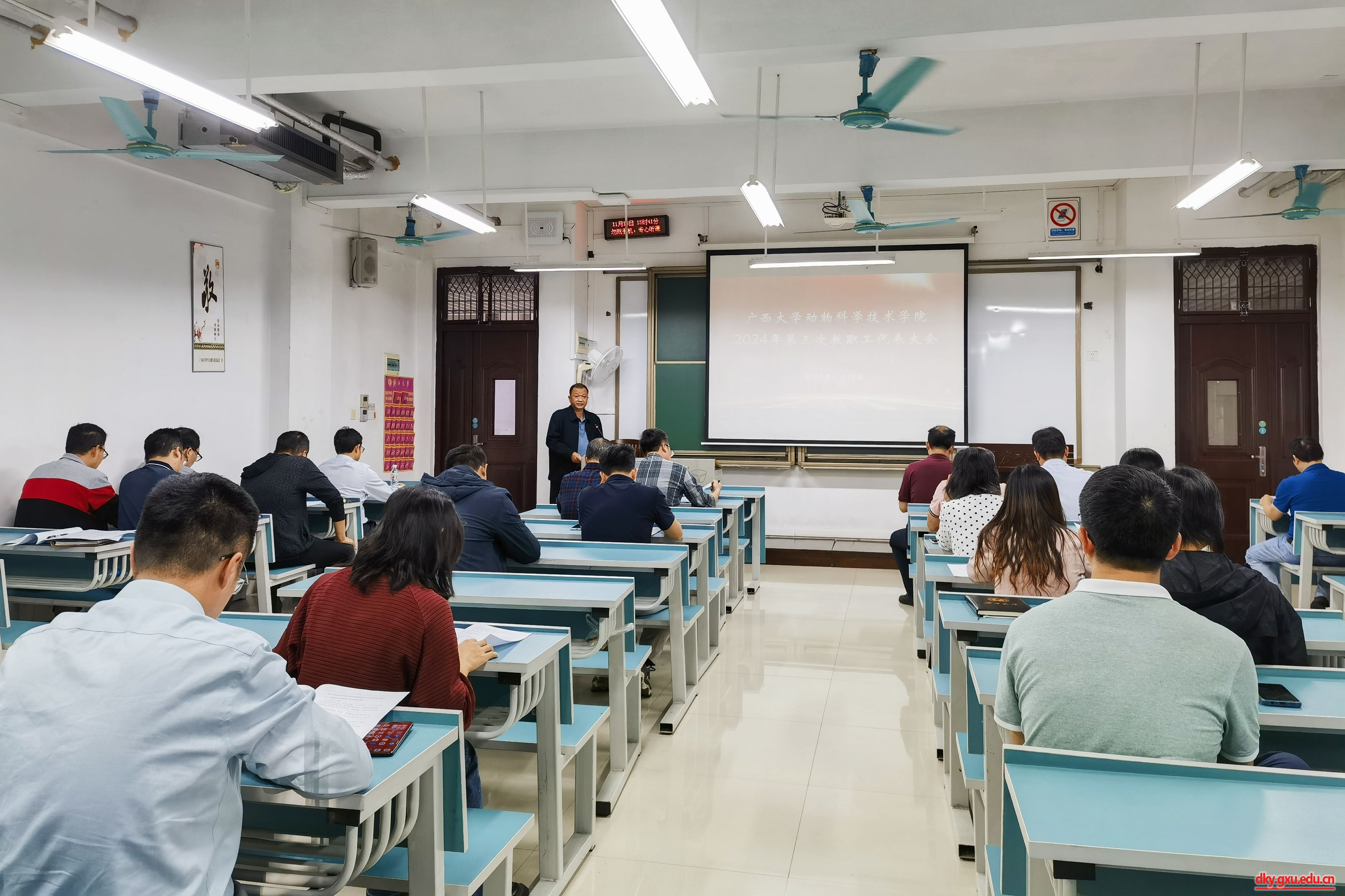 11月19日下午,2024年第三次教职工代表大会在第六教学楼A115教室召开。与会代表听取、审议并通过了《WilliamHill中文官网教职工职业行为负面清单》。动物科学技术公司党委书记韦小强,经理陆阳清,党委副书记沙建,副经理何家康、韦祖樟、蒋钦杨参加会议。WilliamHill中文官网副经理、分工会主席宁鹏飞主持会议。
