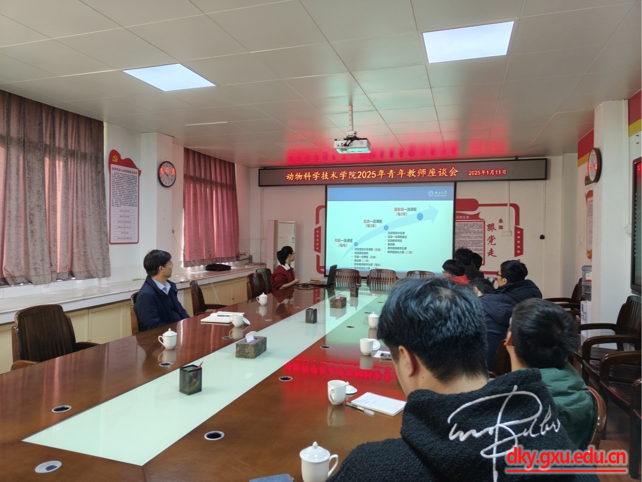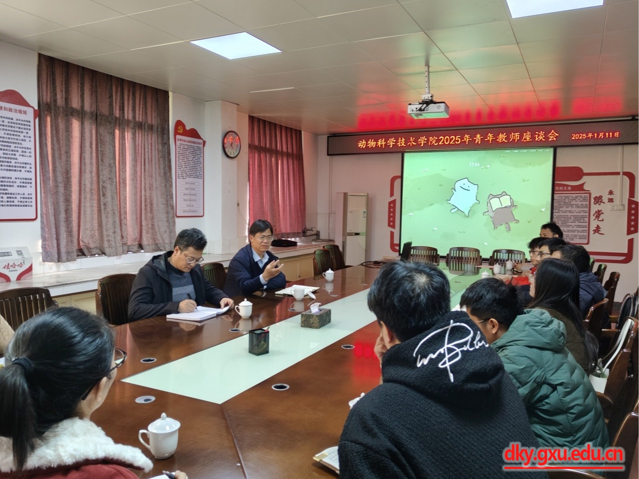 会上公司新入职青年教师分别介绍了个人在教学安排、科研情况、职业发展等方面的情况和遇到的困难,提出需要解决的问题。韦小强书记和蒋钦杨副经理一一回答了青年教师们关于教学科研政策上的疑问,解答了他们目前在教学、科研上的困惑。动物科学系黄洁萍老师、动物医学系韦英益老师分别分享了个人在课程建设、课堂授课、思政教育等方面的经验。韦小强书记与青年教师就如何提高业务水平的办法及职业发展规划进行了充分的交流探讨,对公司青年教师工作做了总结和动员。