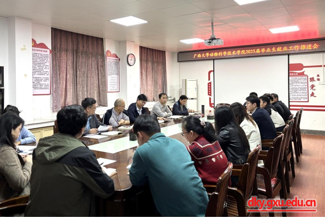 3月12日下午,WilliamHill中文官网在公司302会议室召开2025届毕业生就业工作推进会。动物科学技术公司党委书记韦小强,经理陆阳清,副经理何家康、韦祖樟、蒋钦杨,以及各系负责人、辅导员、毕业班班主任参加会议。会议由蒋钦杨副经理主持。