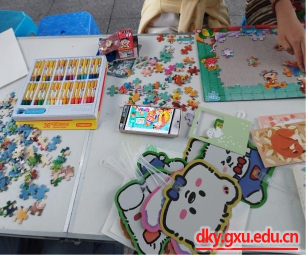 公司精心设计了“限时拼图”和“心理刮痧树”两项趣味活动。“限时拼图”活动要求2名参与者限时完成一副拼图。“心理刮痧树”活动则为同学们提供了彩笔和画纸等材料,大家可以自由发挥,将自己希望拥有的一些品质,或是鼓励他人的话语绘入刮痧树中。