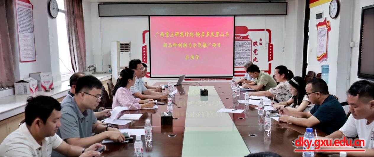 启动会由项目负责人蒋钦杨教授主持,他首先介绍了项目立项情况、执行计划与管理方案等,项目研究骨干李美珍高级畜牧师、潘艳教授、曹艳红研究员、曾俊正高级畜牧师、苏兴才总经理分别汇报了各自承担项目内容的实施方案和年度经费安排。随后,与会成员围绕项目建设目标、实施路径、经费使用方案、成果申报及项目管理等方面进行了深入交流与研讨,达成共识,承诺按时保质完成项目建设任务,推进培育广西自主知识产权的黑山羊新品种。