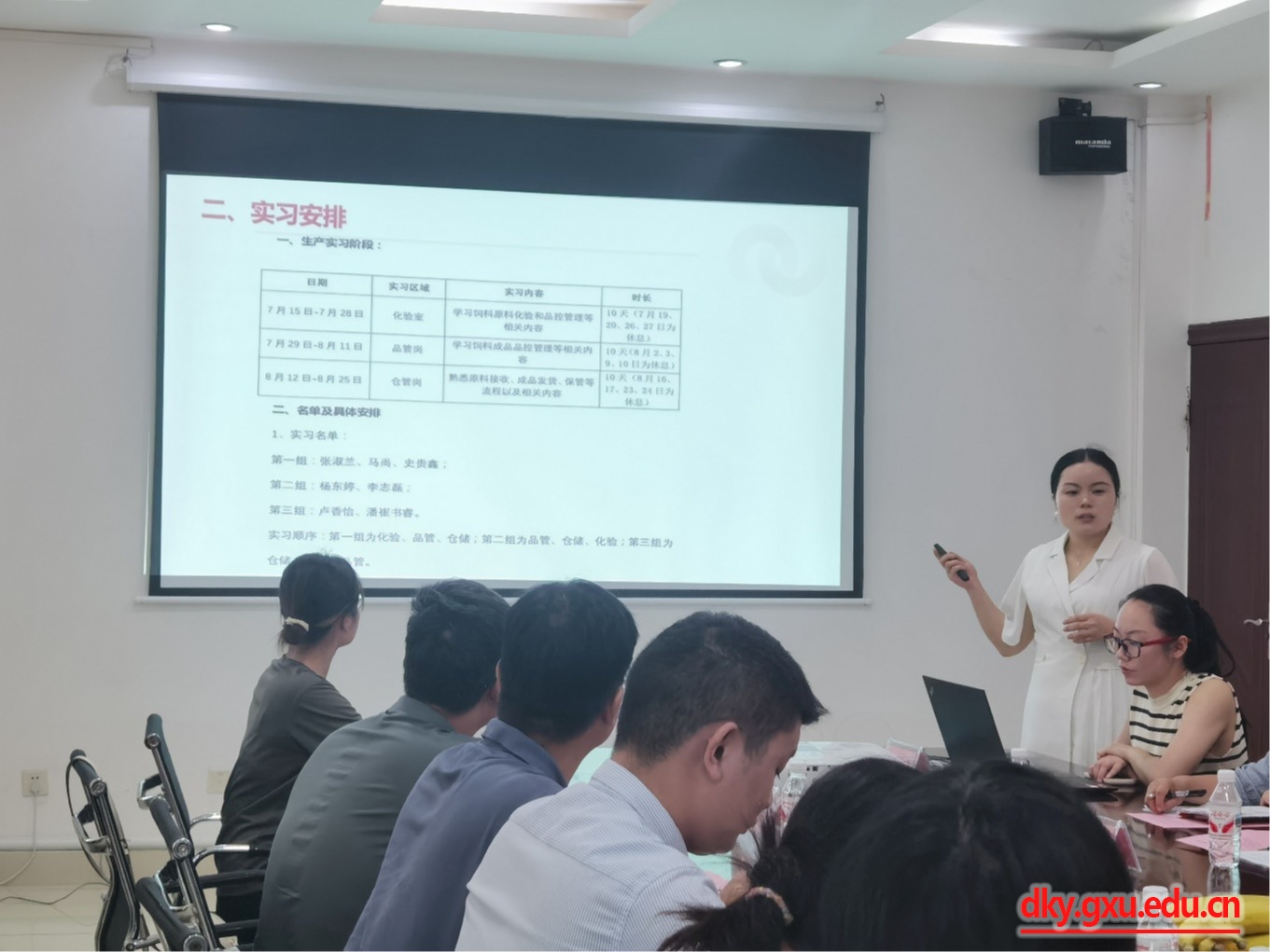 7月25日,为检查实践育人成效,督促强化实习安全,威廉希尔WilliamHill动物科学技术公司党委书记韦小强带队先后到大北农集团广西区武鸣饲料厂、瑞鹏宠物医院南宁安吉分院看望正在开展生产实习的员工。