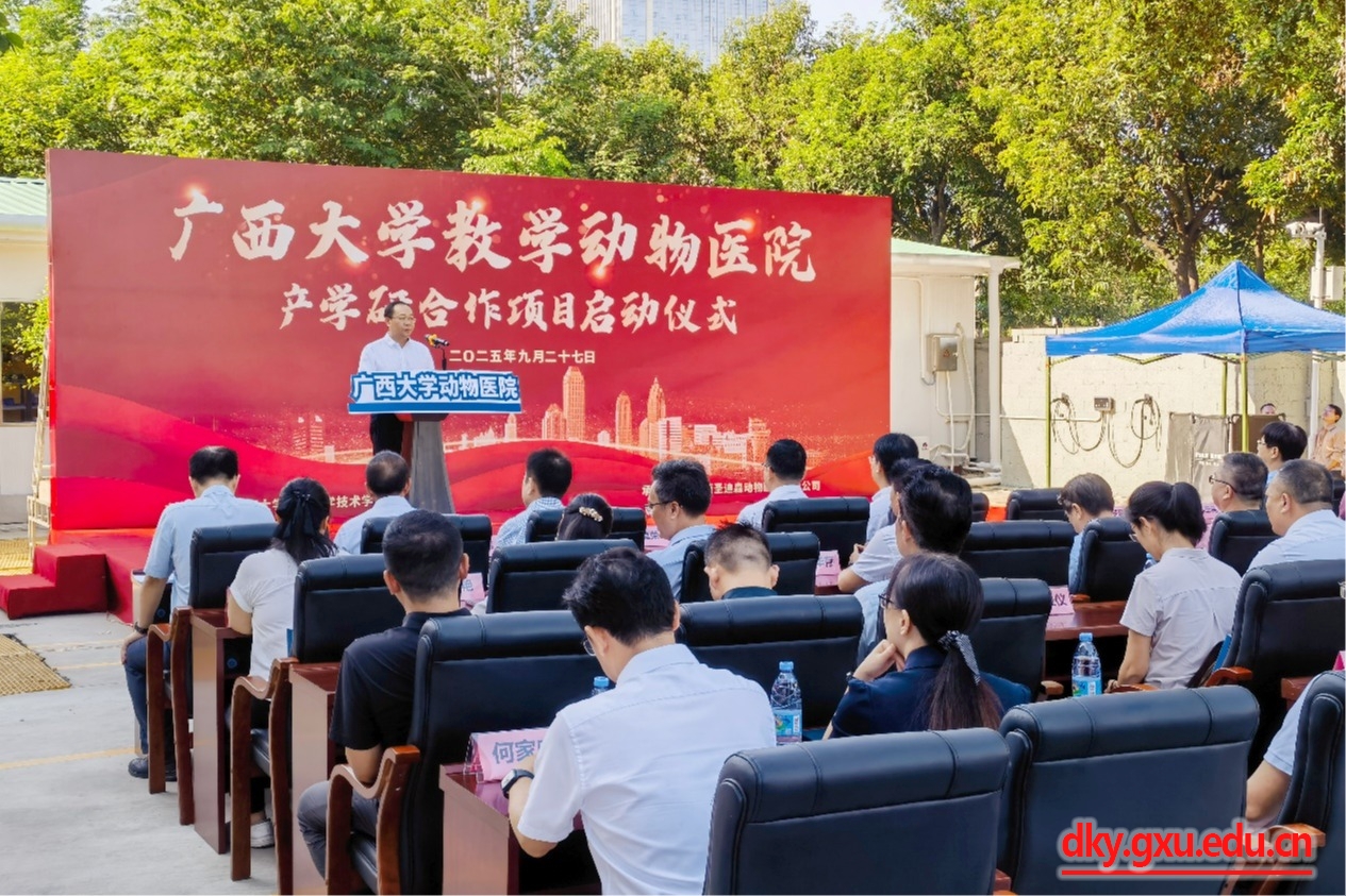 于文进副董事长对产学研合作项目的正式启动表示热烈祝贺,并在致辞中强调,教学动物医院的建设作为深化公司产品改革、推动专业学科发展的关键举措,不仅能够进一步深化产教融合,为培养适应社会需求的高素质人才提供更好的支撑,而且可以搭建动物诊疗创新实践平台,助力兽医学科实现高质量发展。