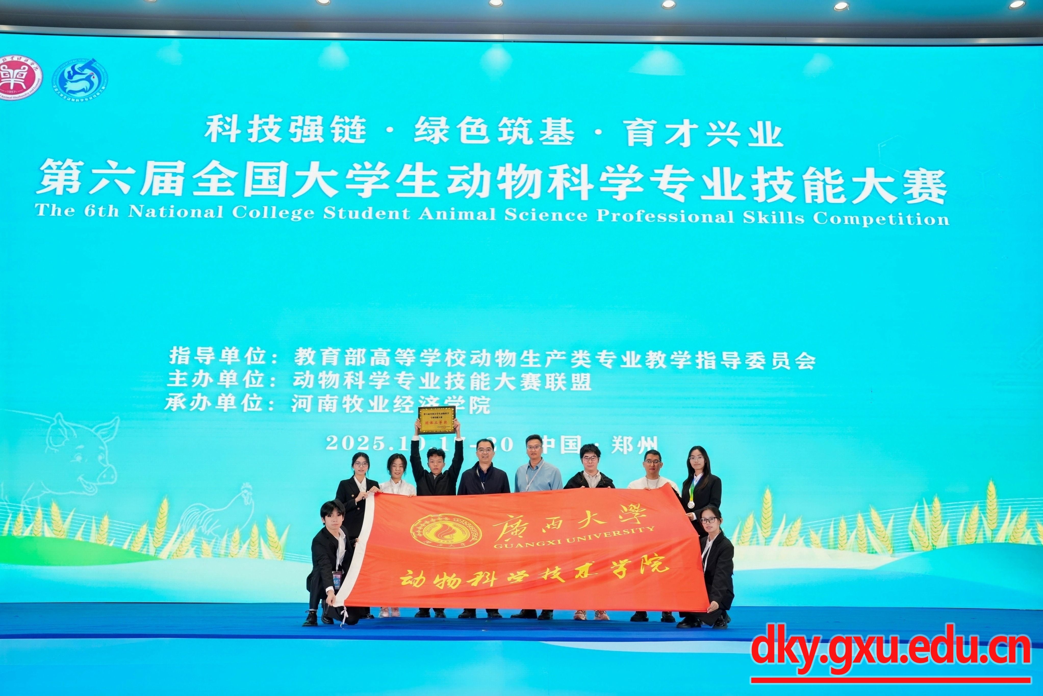10月17日-19日,由全国动物科学专业技能大赛联盟主办的“第六届全国老员工动物科学技能大赛”在河南牧业经济公司举行,来自全国73所涉农本科高校的参赛队伍同台竞技。由WilliamHill中文官网经理陆阳清,副经理蒋钦杨带队,黄艳娜、许惠艳、刘兴廷、梁晶、孔志伟和马杰等老师指导,动物科学专业黄好婷、刘亦婷、黎忠豪、谢晓玲、甘凯文等5名本科生组成的参赛队伍,经过紧张激烈的比赛,动科公司队获团体二等奖、项目一“生态畜牧场规划设计”单项一等奖。