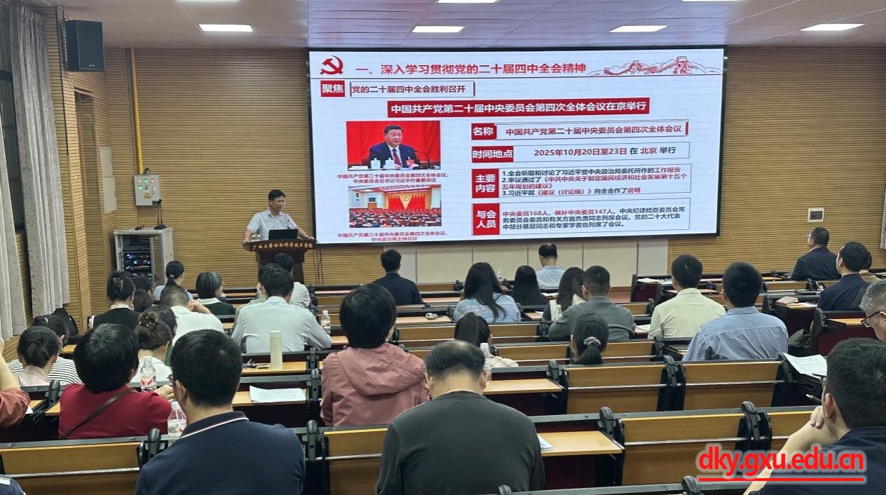 10月29日下午,威廉希尔WilliamHill动物科学技术公司党委书记韦小强在公司318报告厅,以《向着中国式现代化的宏伟目标 阔步前进、接续奋斗——深入学习贯彻党的二十届四中全会精神》为题讲授专题党课,向全院教职工宣讲党的二十届四中全会精神。