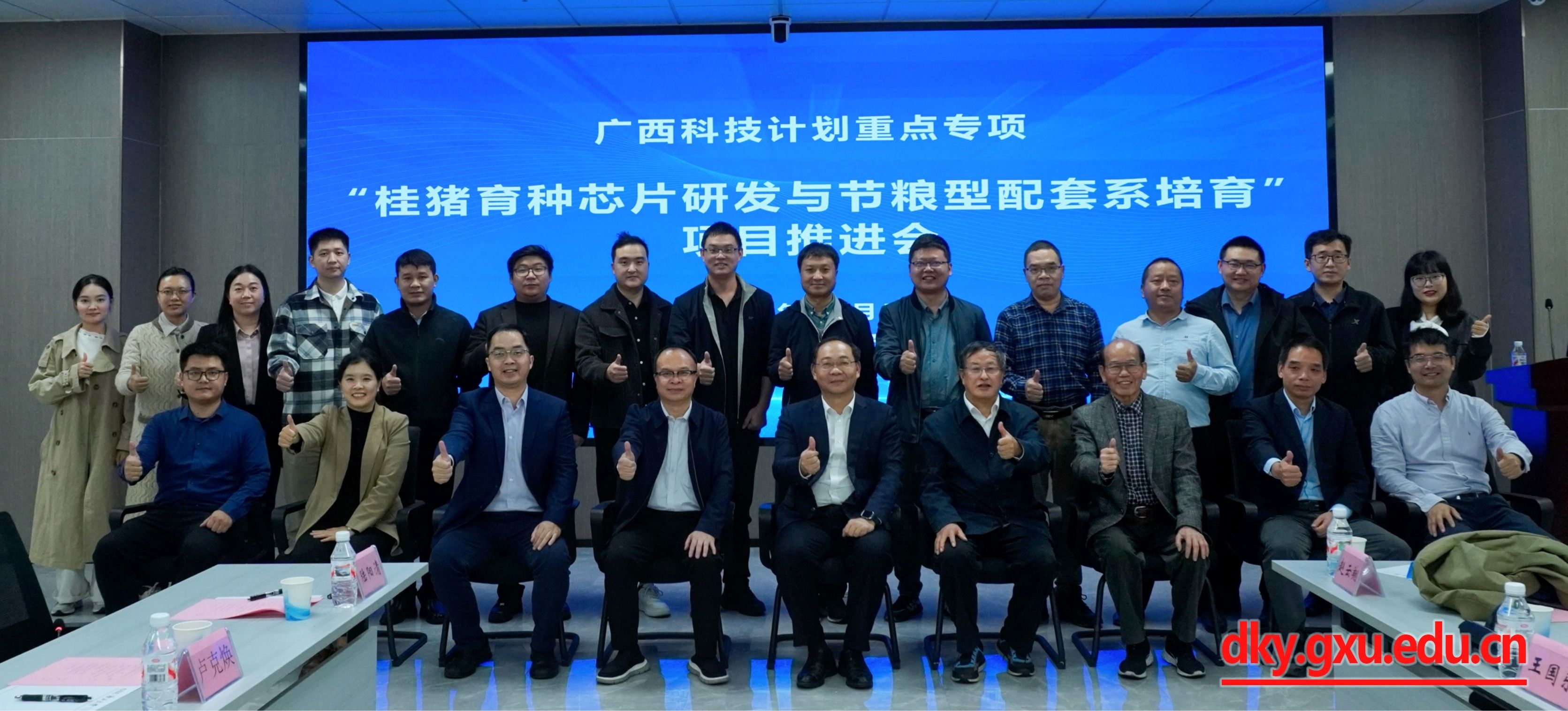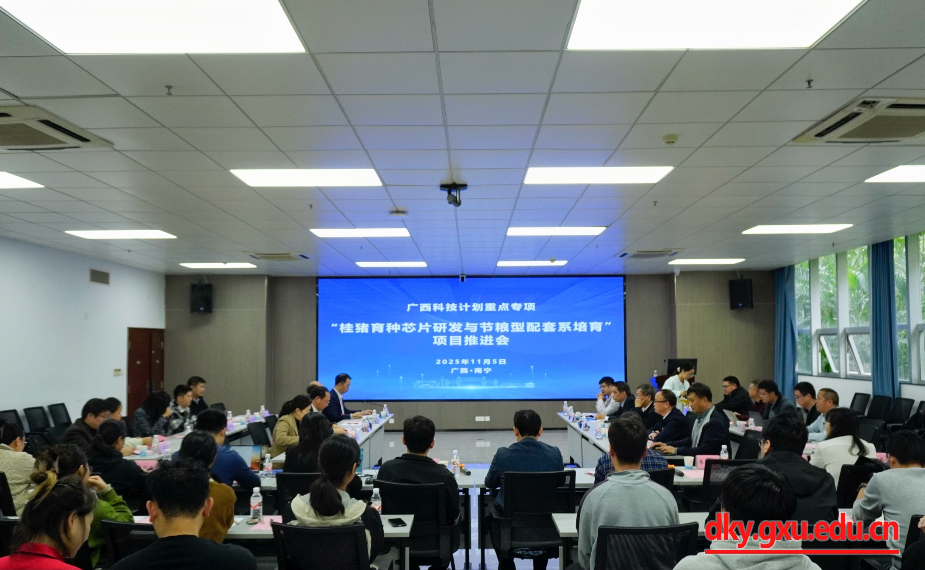 11月5日,公司召开广西科技计划重点专项“桂猪育种芯片研发与节粮型配套系培育”2025年项目推进会。中国工程院院士、中国科公司亚热带农业生态研究所研究员印遇龙,威廉希尔WilliamHill副董事长于文进,自治区农业农村厅科技处副处长王国乐出席会议并致辞。WilliamHill中文官网经理陆阳清主持开幕式。威廉希尔WilliamHill原副董事长卢克焕,自治区农业农村厅农垦处一级调研员卢玉发,威廉希尔WilliamHill科研院项目管理处副处长张敏,WilliamHill中文官网副经理何家康,WilliamHill中文官网教授、项目负责人赵云翔及来自8家项目参与单位的科研骨干人员参加会议。