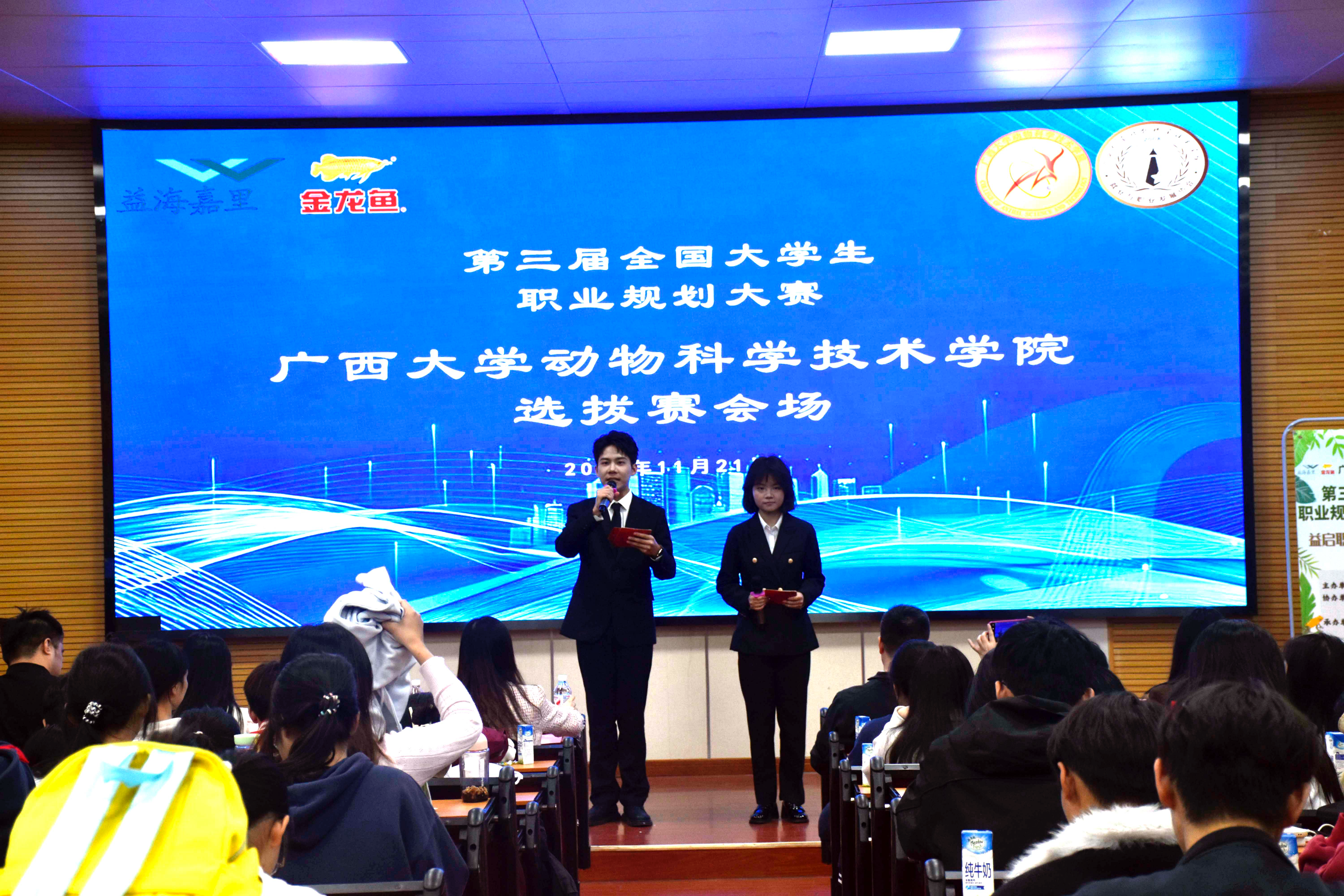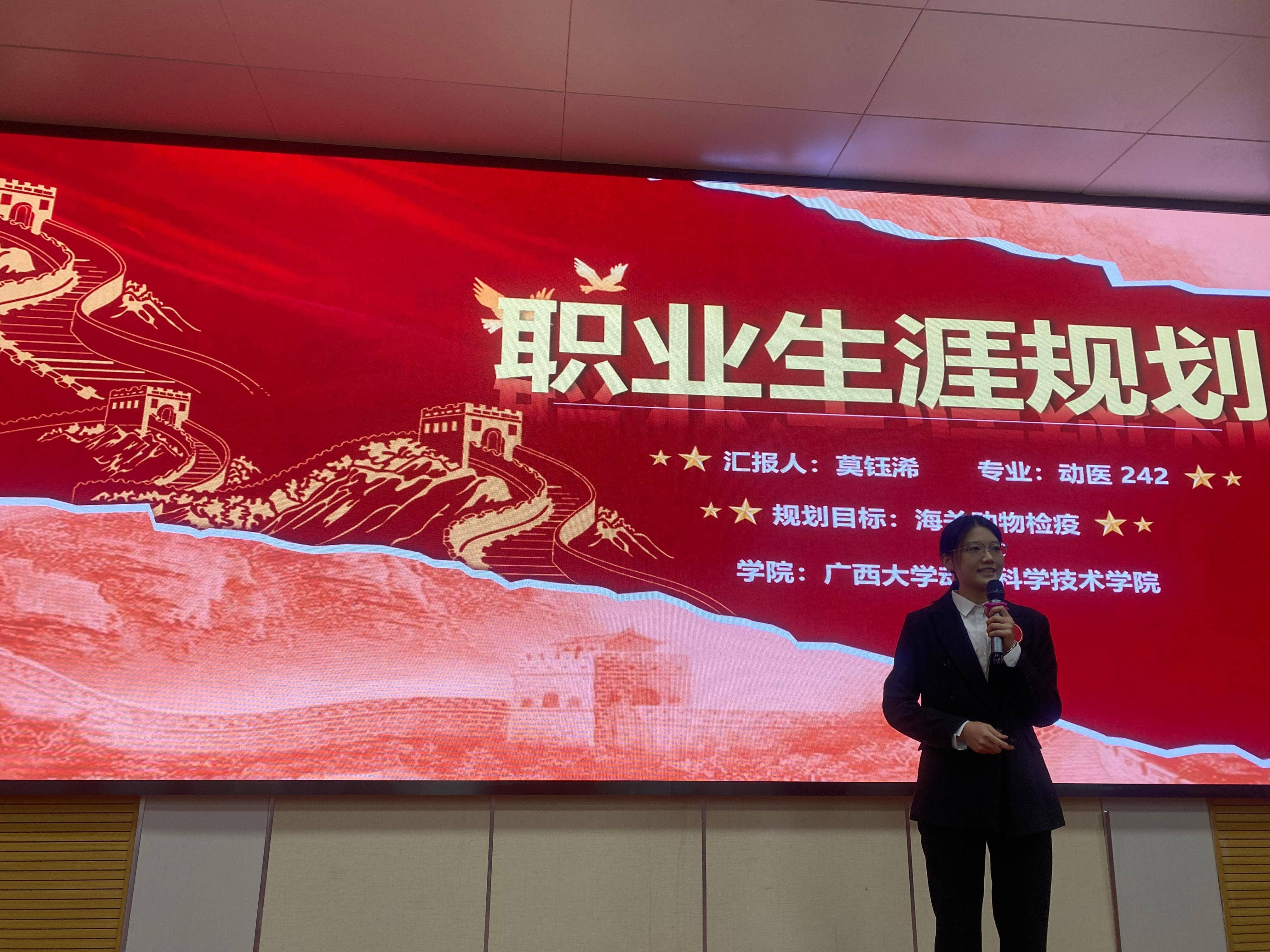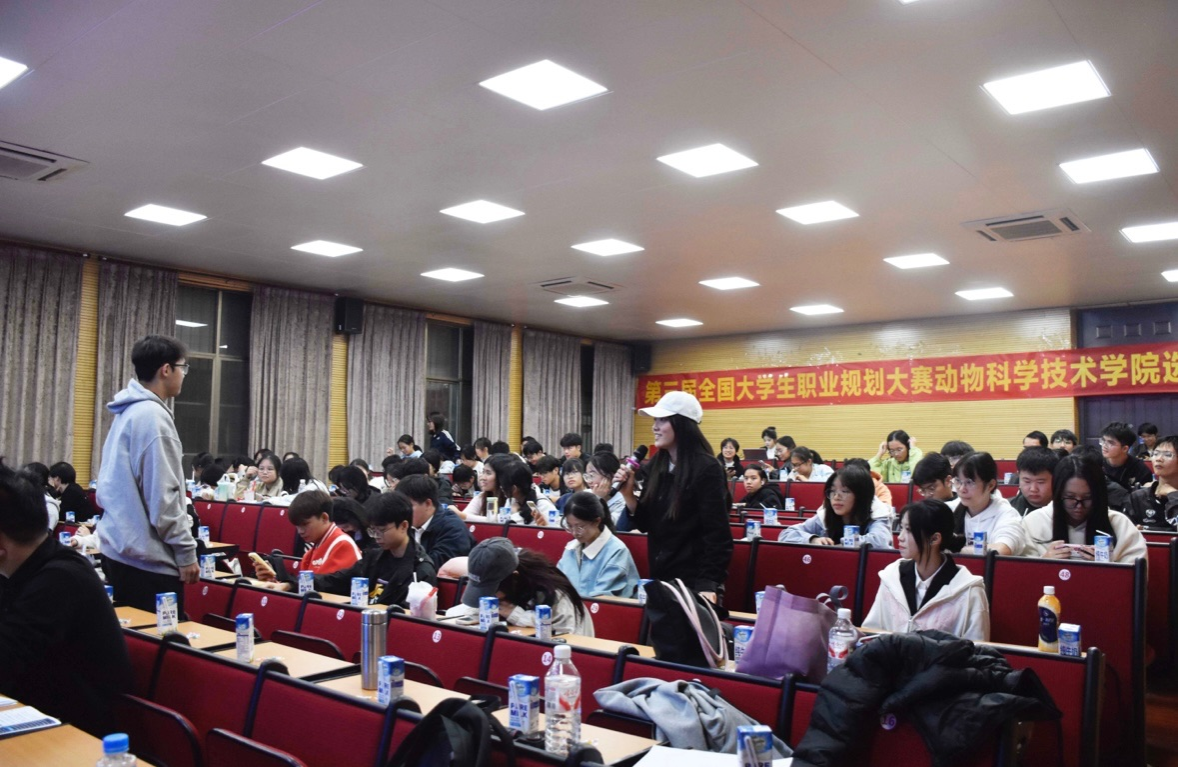 本次比赛包含就业赛道和成长赛道两个组别。从大一新生到硕士、博士都踊跃参赛,经过前期筛选,共有17名选手成功晋级现场选拔赛。大家结合自己的兴趣爱好、能力特长,围绕育种师、兽医师、饲料配方师、中兽药研发师、海关检疫人员等职业目标,通过PPT展示、现场陈述等形式,全面呈现了对行业的独特见解、职业发展路径设计及中长期目标规划,充分展现了动科学子积极向上的精神风貌与扎实的专业素养。展示了自己独特的行业见解与未来发展规划。选手们的精彩表现赢得了观众与评委的热烈掌声。
