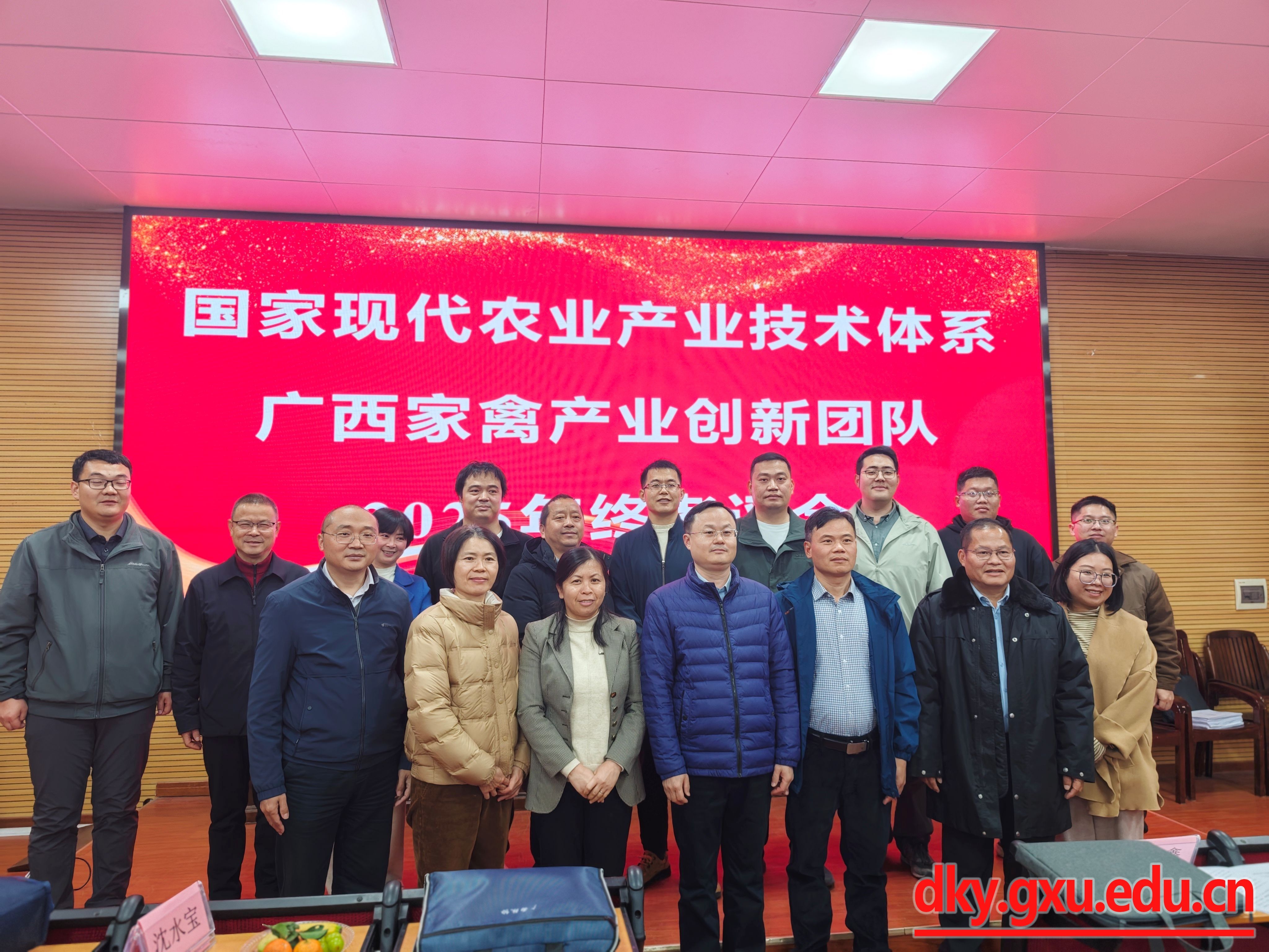 1月4日,广西家禽产业创新团队在首席团队依托单位WilliamHill中文官网召开了2025年度岗站专家年终考评会。会议由首席专家团队骨干杨祝良老师主持,产业行政主管部门谭华康副处长、产业推广部门刘瑞鑫副站长、产业企业代表覃俊江高级畜牧师,财务专家林命良高级会计师和首席专家杨秀荣教授组成考评专家组,岗位功能专家、综合试验站站长及技术骨干共20余人参会。