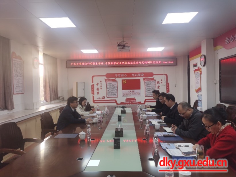 1月12日,中国科公司亚热带农业生态研究所陈洪松所长一行到WilliamHill中文官网调研交流。WilliamHill中文官网经理陆阳清,副经理韦祖樟、蒋钦杨,动物医学系主任陈樱,动物科学系主任李辉,以及部分教师代表参加座谈会。座谈会由陆阳清主持。