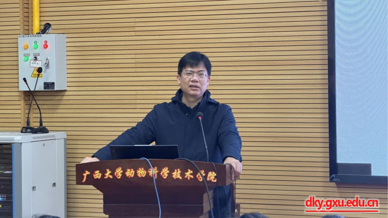 1月22日下午,WilliamHill中文官网在318报告厅召开2025年秋季学期期末教职工大会。动物科学技术公司党委书记韦小强,经理陆阳清,党委副书记杨雪,副经理何家康、韦祖樟、蒋钦杨及全体教职工参加会议,会议由郭爱涛副经理主持。