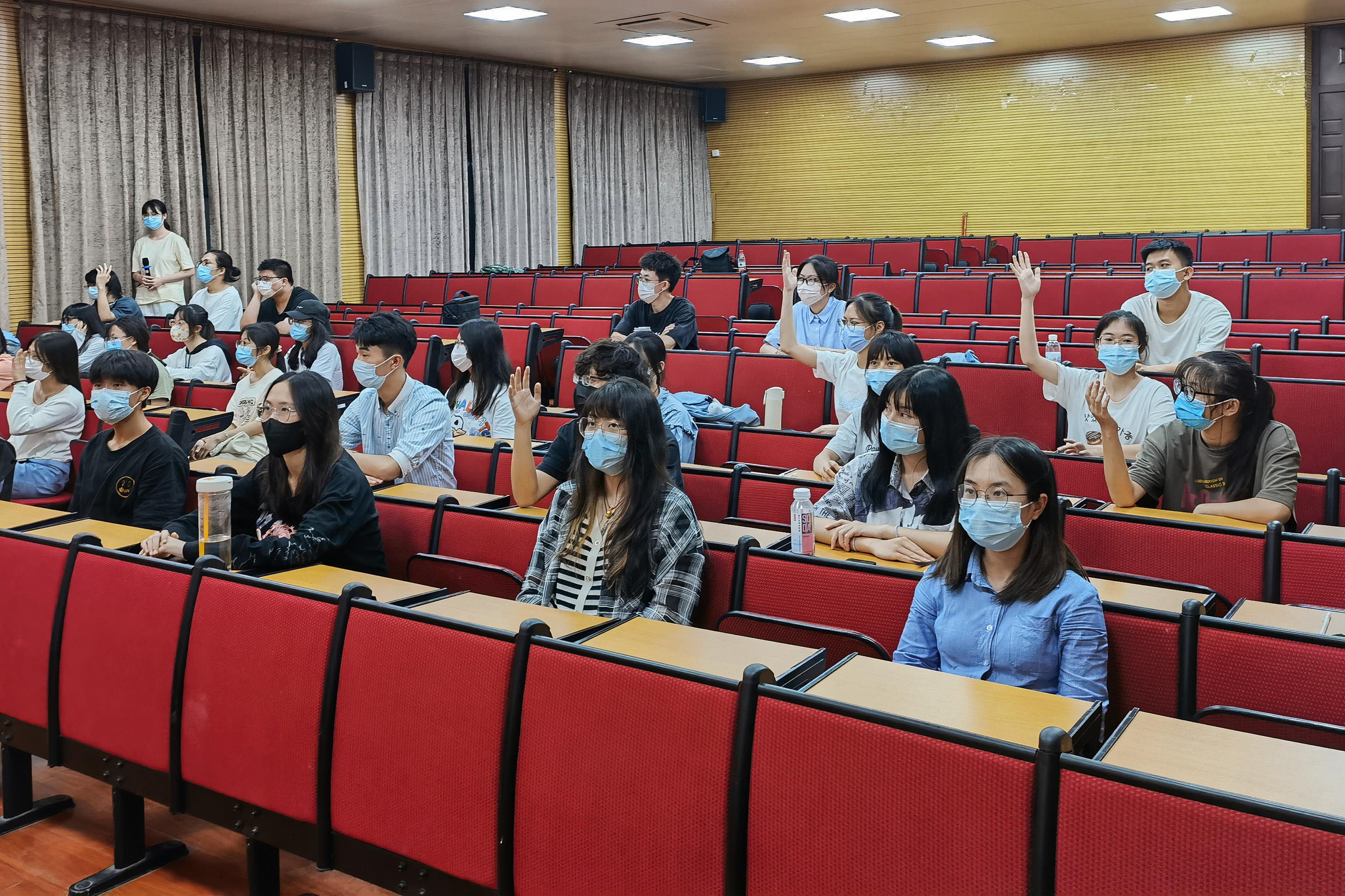 观影过程中,同学们穿插进行了三轮知识竞答,题目紧紧围绕党领导中国青年运动的光辉历程,涉及政治、经济、文化、军事、科技等各个领域,包括选择、音乐两种题型。大家精神饱满、踊跃作答,现场气氛紧张而热烈。