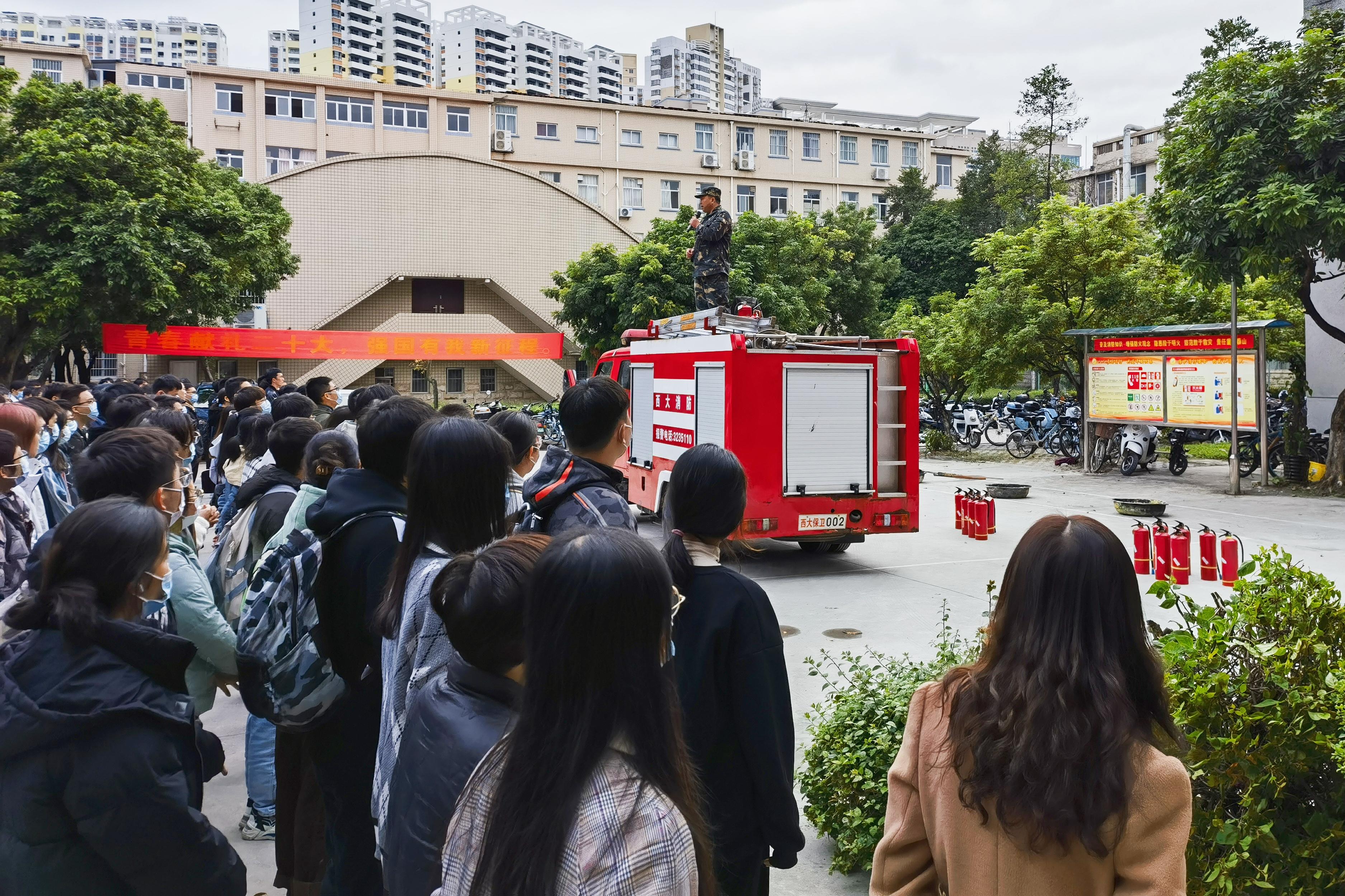 首先,保卫处黄光电同志结合公司案例,向同学们分析了校园火灾形成的原因和特点,并讲解了灭火器和消防水带等不同消防器材的使用方法和注意事项。