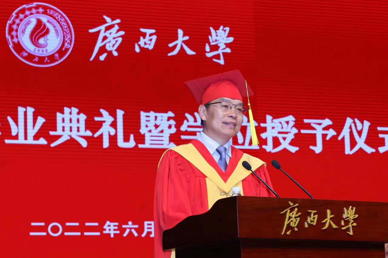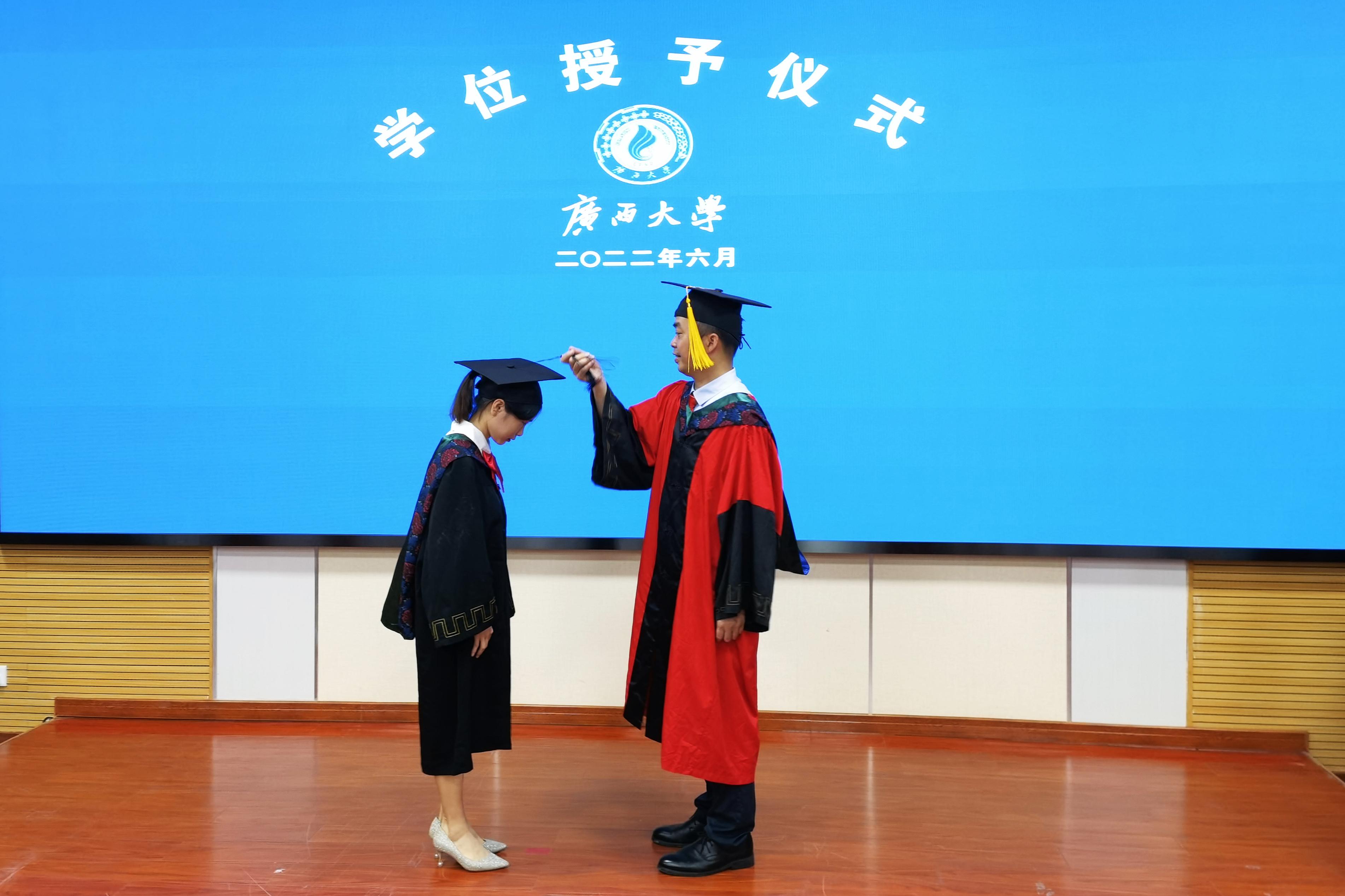 “复兴中华,发达广西”“努力,努力,大家一齐努力”,毕业典礼暨学位授予仪式在奏唱校歌声中落下帷幕。