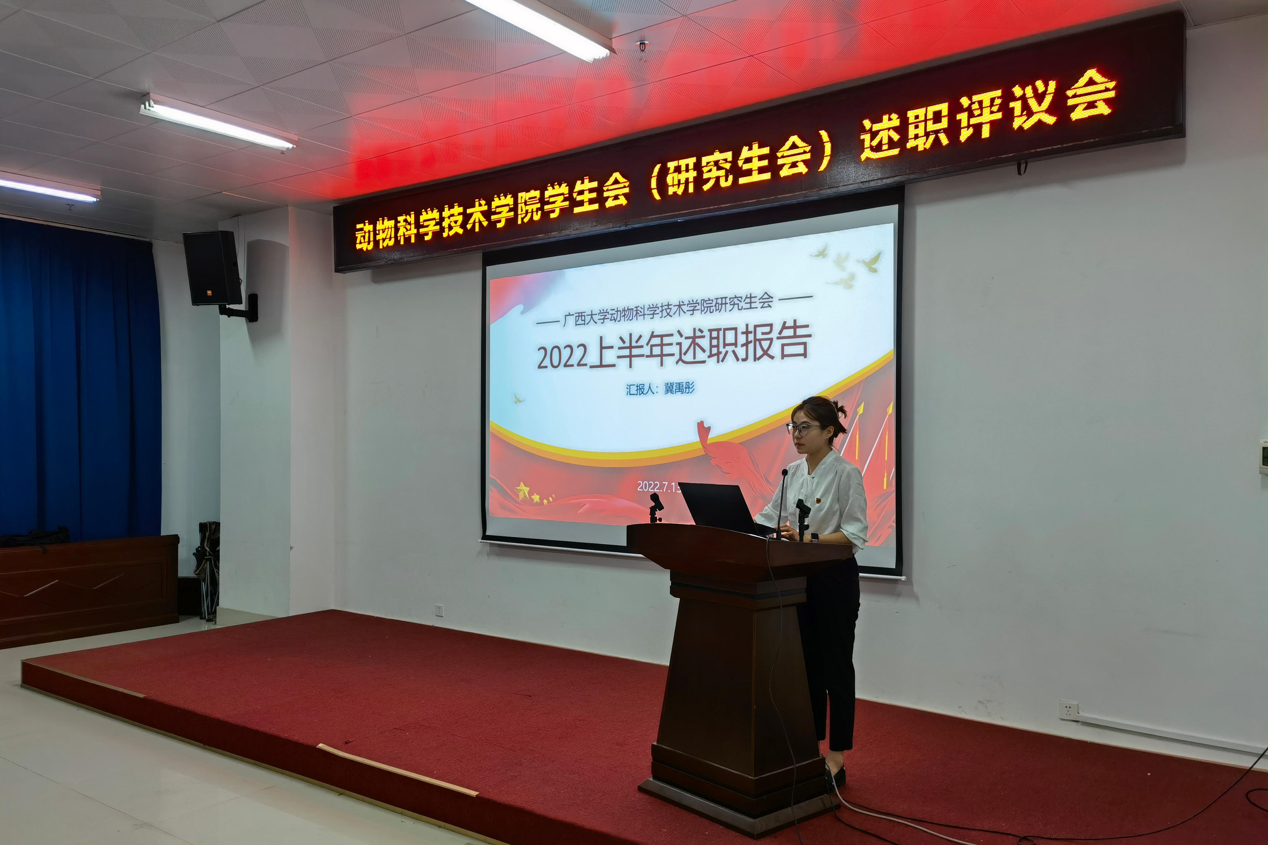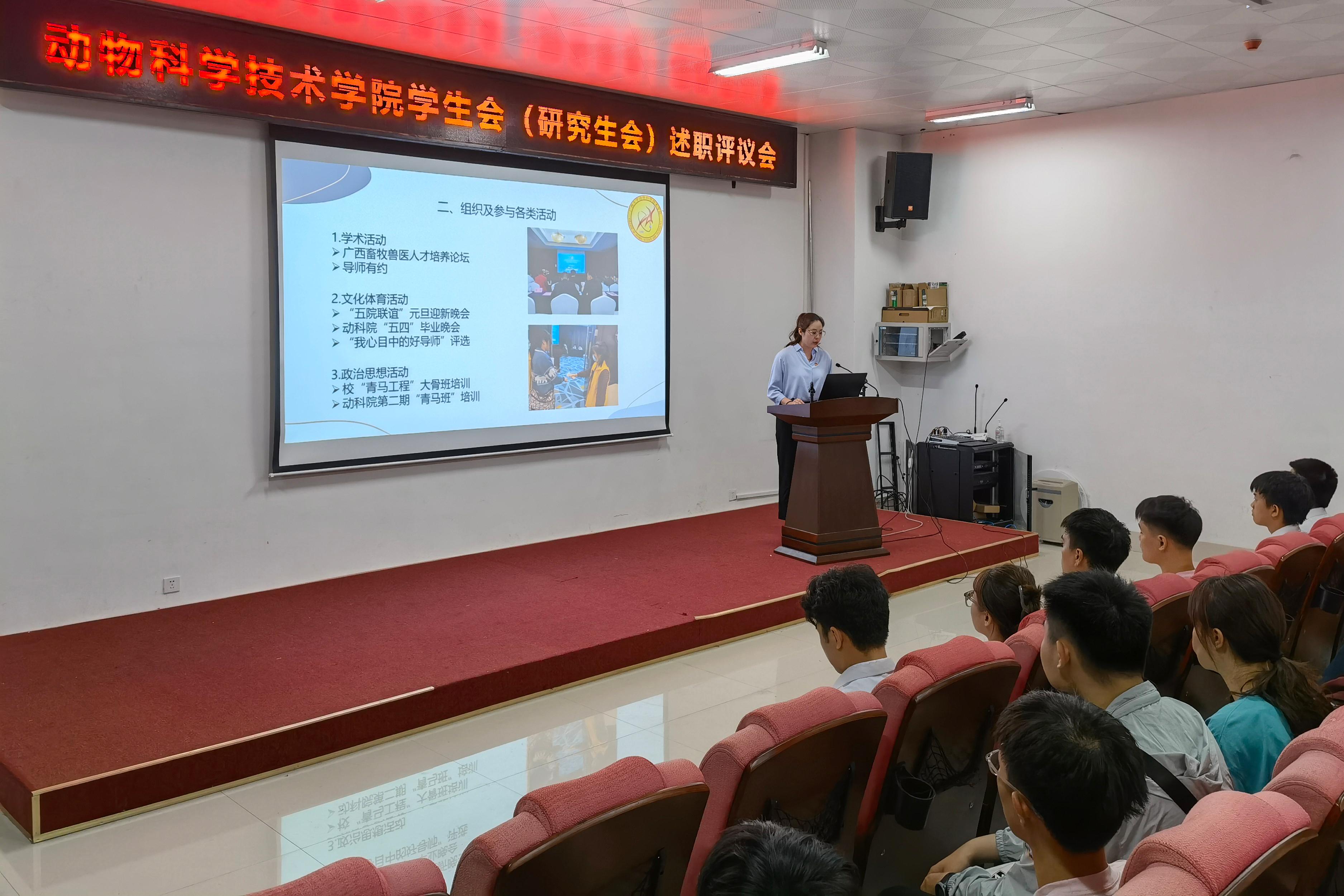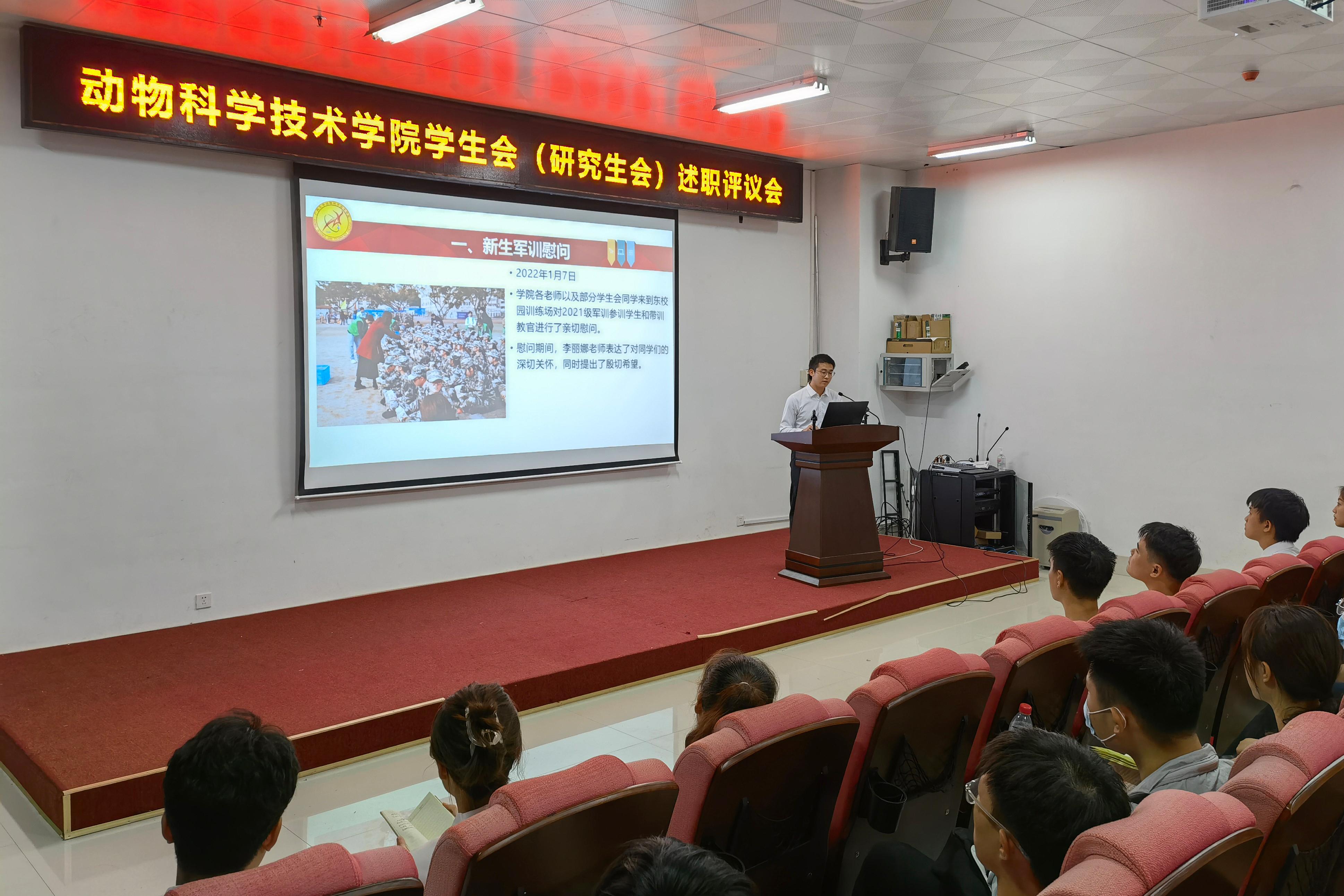 员工会、研究生会主席团成员各自从思想政治、专业学习、工作成效、纪律作风和个人成长等方面依次进行述职。