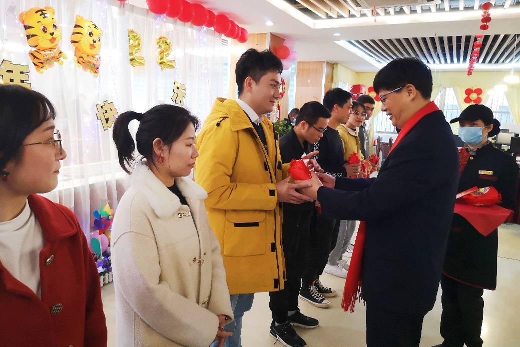 当天过生日的刘明晗同学说:“感恩公司的暖心安排,我将永远珍藏这份感动。留校过年也和回家一样,让我在这个别样的春节和庆生中感受到了满满的幸福。作为一名博士生,我会把这份温暖关怀化作学习和科研的动力。2022年,让我们一起向未来!”