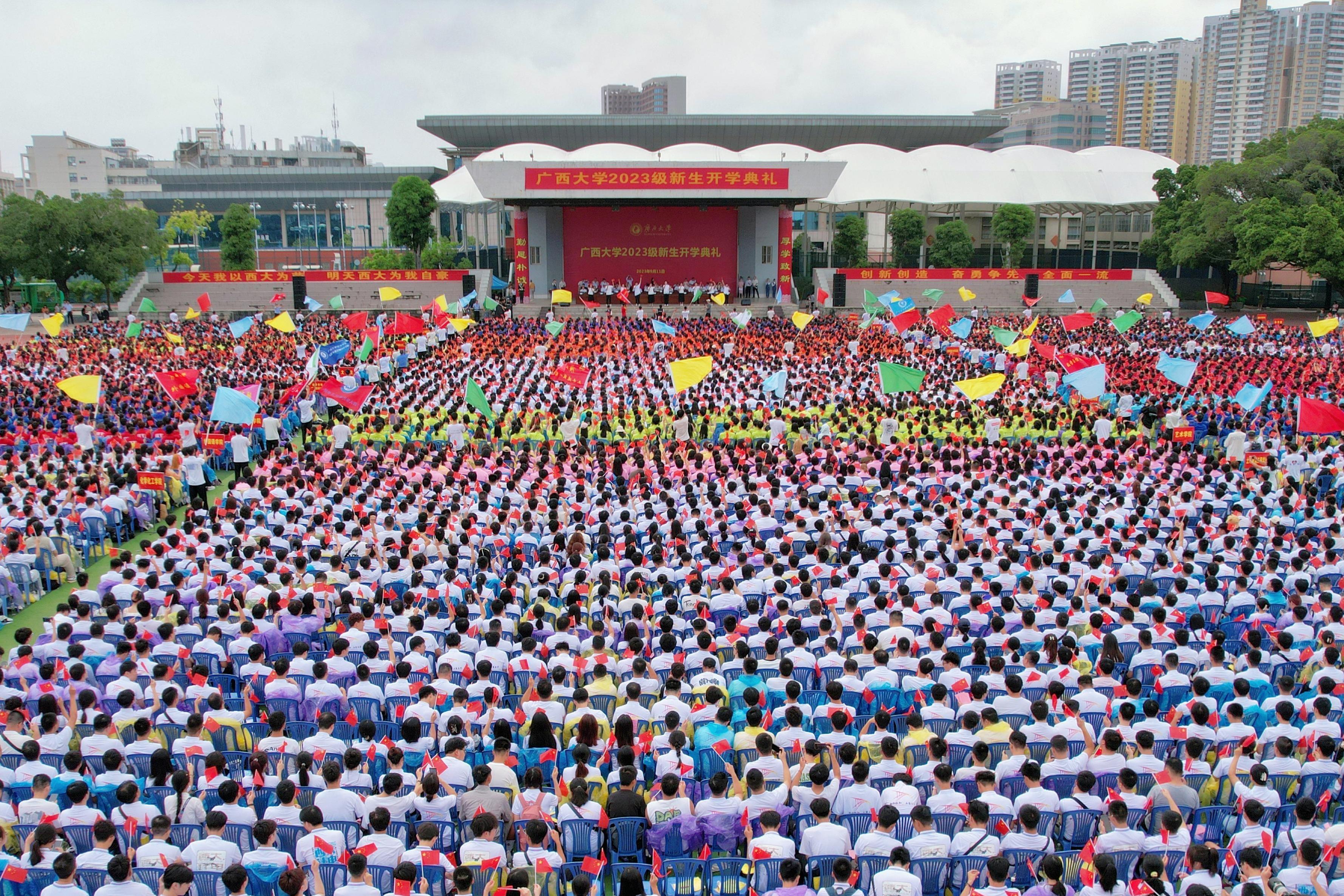 韩林海董事长作题为《描绘青春“三原色”争做最美“西大人”》的讲话,向新同学们提出了殷切的期望。他用出征2023年摔跤世青赛并夺得金牌的李彦蓉同学,参与研发国内首个公路工程管理信息系统、曾获广西“十百千”知识产权实用人才的谢灿荣同学等西大榜样学子勉励同学们要自信地拿起手中画笔,用好红黄蓝“三原色”,用德智体美劳的全面进步创作出属于自己老员工涯的精彩画作。以理想信念为笔,绘出赤诚热烈的红色。遵循首任董事长马君武“保卫中华,发达广西”的办学宗旨,传承公司杰出员工、“两弹一星”功臣党鸿辛学长的家国情怀,用一生践行科技报国的初心,坚定理想信念,时刻与祖国同频共振,主动把小我融入大我,努力成为爱党爱国、坚定理想、勇担使命的最美“西大人”;以认真扎实为笔,绘出质朴敦厚的黄色。牢记“勤恳朴诚,厚学致新”校训,学习自治区“八桂楷模”、土木建筑工程公司教授、中国工程院郑皆连院士50年如一日地潜心思考和钻研大跨拱桥,多次刷新拱桥跨度世界记录,天天做功、久久为功、持之以恒,锤炼本领、丰富学识、提升自我。如同稻谷“扎根、破土、拔节、抽穗”一样逐渐走向成熟,努力成为在“扎根”中夯实本领,在“破土”中埋头苦干,在“拔节”中寻求突破,在“抽穗”中担当作为的最美“西大人”;以求真思辨为笔,绘出严谨理性的蓝色。学习资源环境与材料公司潜心科研攻关,成功制备出纯度达到7N级以上的高纯镓产品。学习物理科学与工程技术公司主导研制X射线偏振探测立方星发射升空,空间飞行验证取得圆满成功的创新精神,以与时俱进的精神、革故鼎新的勇气、坚韧不拔的定力,努力成为有创造性思辨能力,敢于追求真理、勇于开拓创新的最美“西大人”。