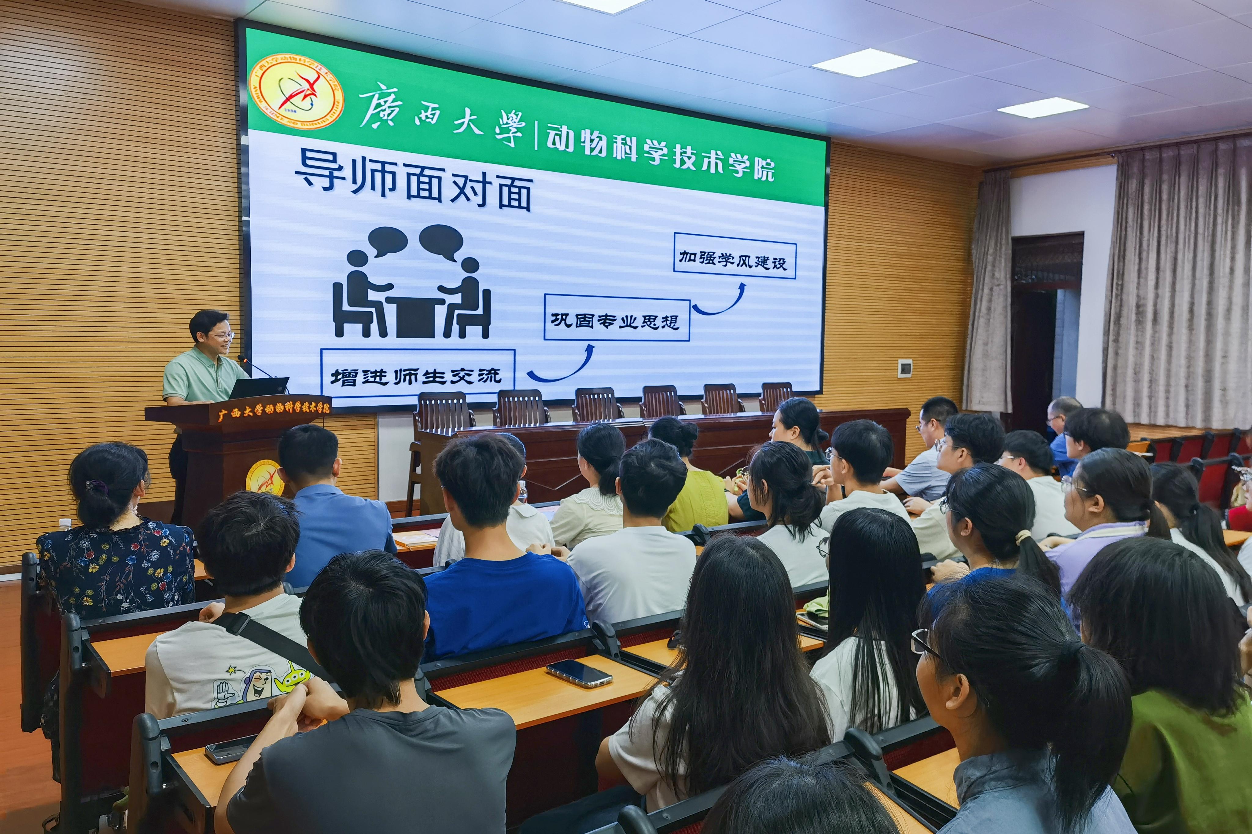 为巩固专业思想,加强学风建设,增进师生交流,营造学术氛围,7月5日晚上,WilliamHill中文官网在公司318报告厅举办第二季“导师面对面”学术沙龙(第二场),邀请何家康、韦祖樟、陈樱、王晓晔、于美玲、方芳、韦懿仙7位导师嘉宾到场分享个人经历、人才培养和科研方向,并与员工互动交流,共同探讨学业规划、职业发展和个人成长。动物医学专业2022级全体本科生参加此次活动。