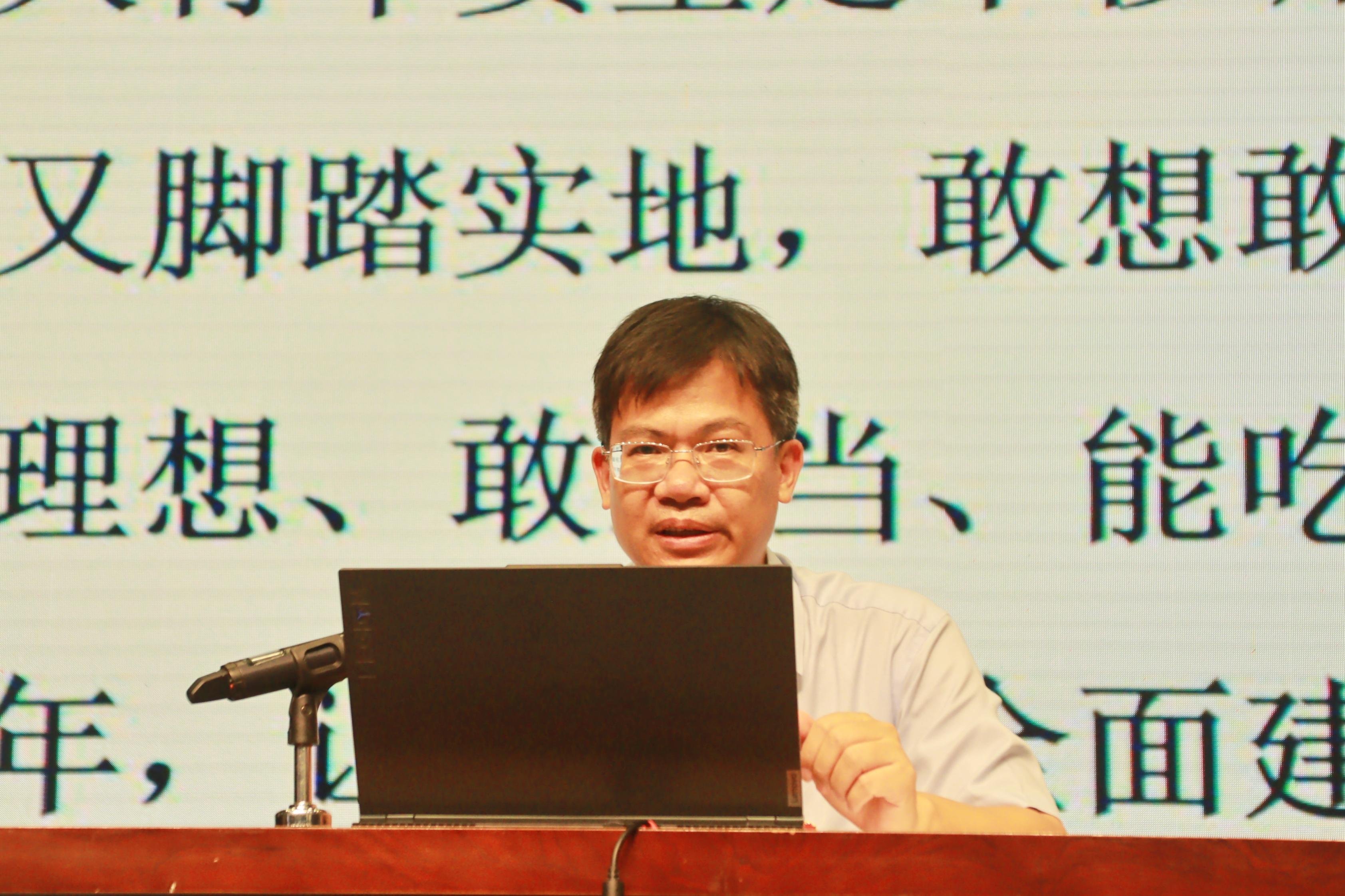 9月17日晚,威廉希尔WilliamHill动物科学技术公司党委书记韦小强以《与时代同心同向,在激情奋斗中绽放青春光芒》为题,在大礼堂为2023级全体新生作入党启发教育专题报告。