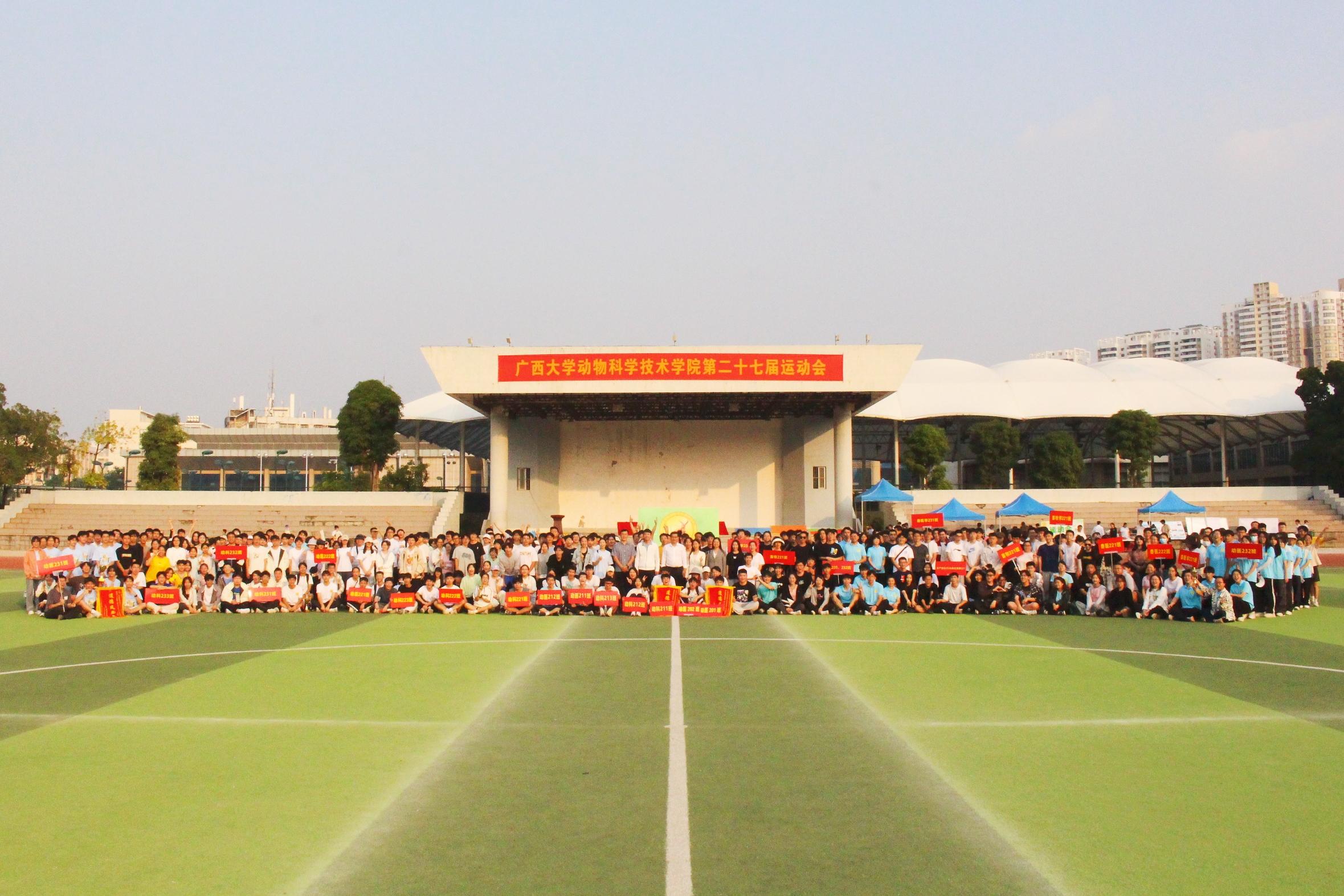 11月25日,WilliamHill中文官网第二十七届运动会在西校园田径场隆重举行。动物科学技术公司党委书记韦小强,经理陆阳清,党委副书记沙建,经理助理、动物科学系主任蒋钦杨,团委书记李丽娜,团委副书记刘诚,辅导员崔月明、彭可可、邹佳琪、马朝阳,以及全院本科生、研究生参加此次活动。