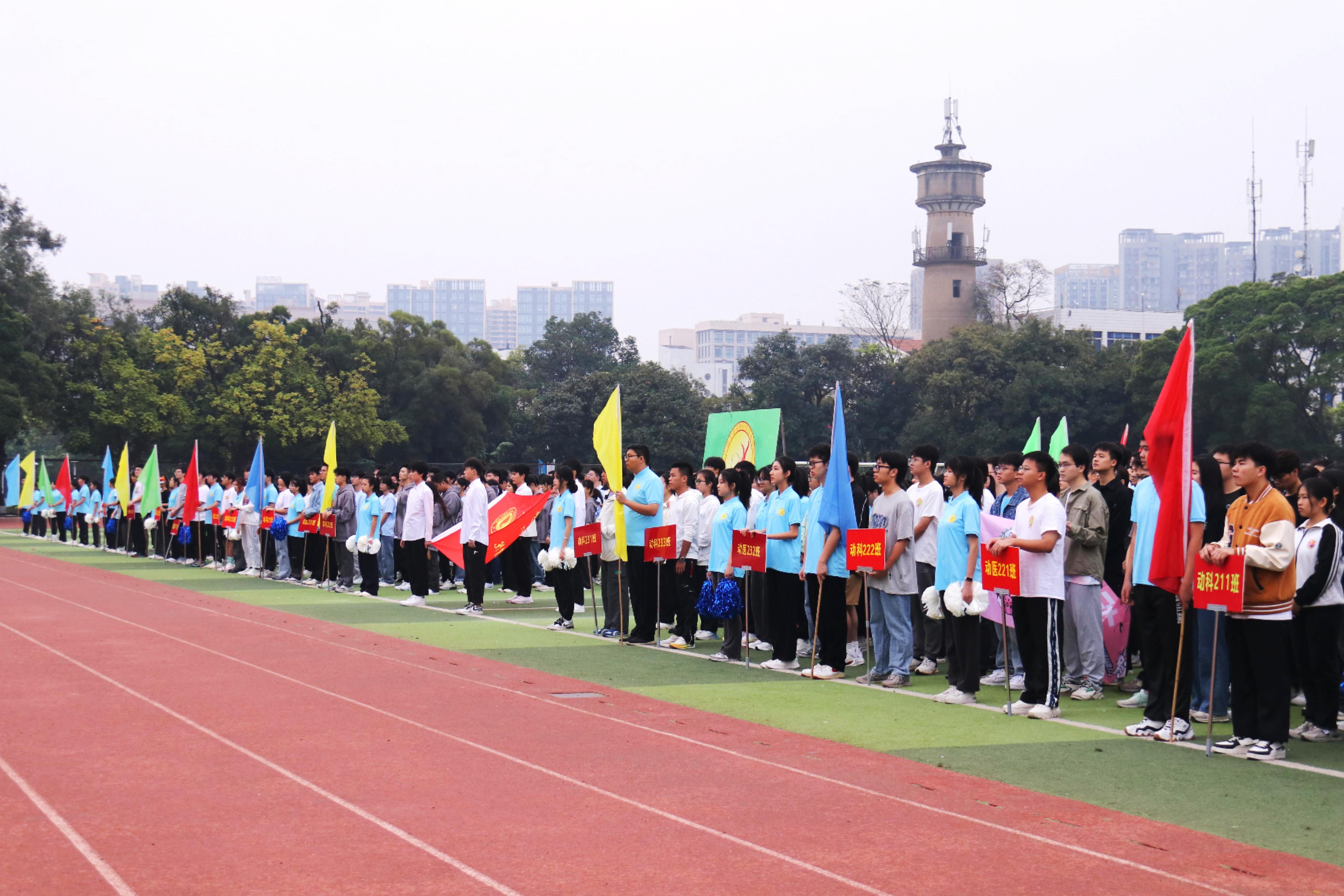 开幕式上,陆阳清老师致开幕词。他强调,体育承载着国家强盛、民族复兴、个人幸福的梦想,希望动科学子传承亚运会的拼搏精神,延续学青会的激情热血,积极参与体育运动,以饱满的热情、昂扬的斗志、团结的精神投入到本届运动会以及今后的学习、生活中去。
