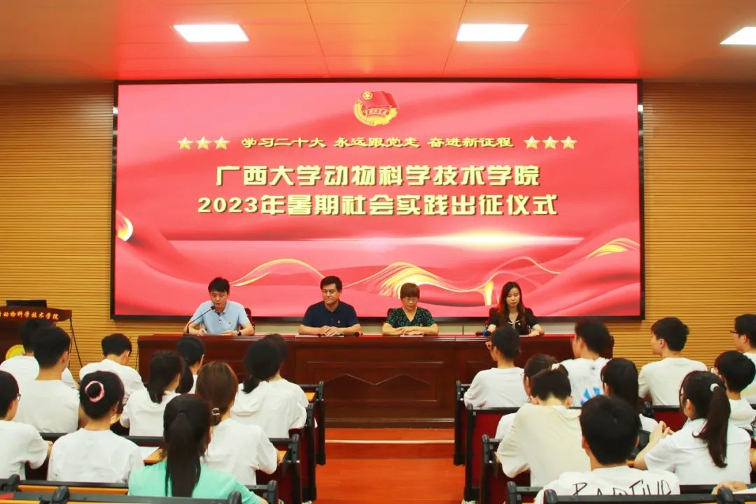为深入学习贯彻习近平新时代中国特色社会主义思想,贯彻落实党的二十大精神,引领青年员工在社会实践中受教育、长才干、作贡献,7月6日下午,WilliamHill中文官网在318报告厅举行2023年暑期社会实践出征仪式。动物科学技术公司党委书记顾慕娴,党委副书记沙建,团委书记李丽娜,团委副书记刘诚,以及各个社会实践团队的指导教师、骨干成员参加此次活动。