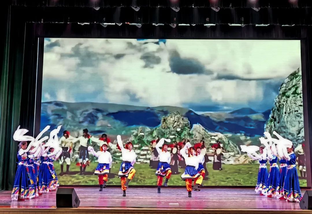 由各公司藏族员工表演的舞蹈《雪域儿女》,合着欢快明朗的音乐,男生潇洒豪迈的舞步,同女生温柔舒展的舞姿相互配合,为欢送晚会增添了一抹靓丽的少数民族风情。