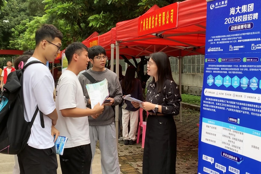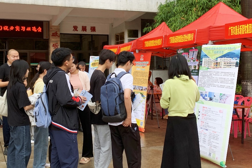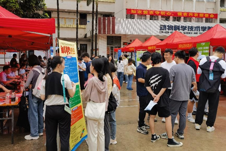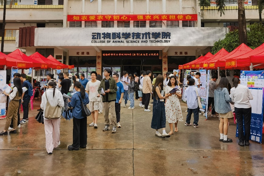 本次双选会邀请了广西农垦、扬翔股份、正大集团、力源集团、温氏集团、双胞胎集团、大北农集团、牧原食品、瑞鹏宠物医疗等来自全国各地的50余家用人单位来校选聘英才,涵盖了农业、制造、教育、科技、医疗等多个行业领域,提供了生产管理、技术服务、产品研发、市场营销等1010个招聘岗位,涵盖本科、硕士和博士多个层次,为员工就业、实习带来了更为广阔的选择空间和发展平台。
