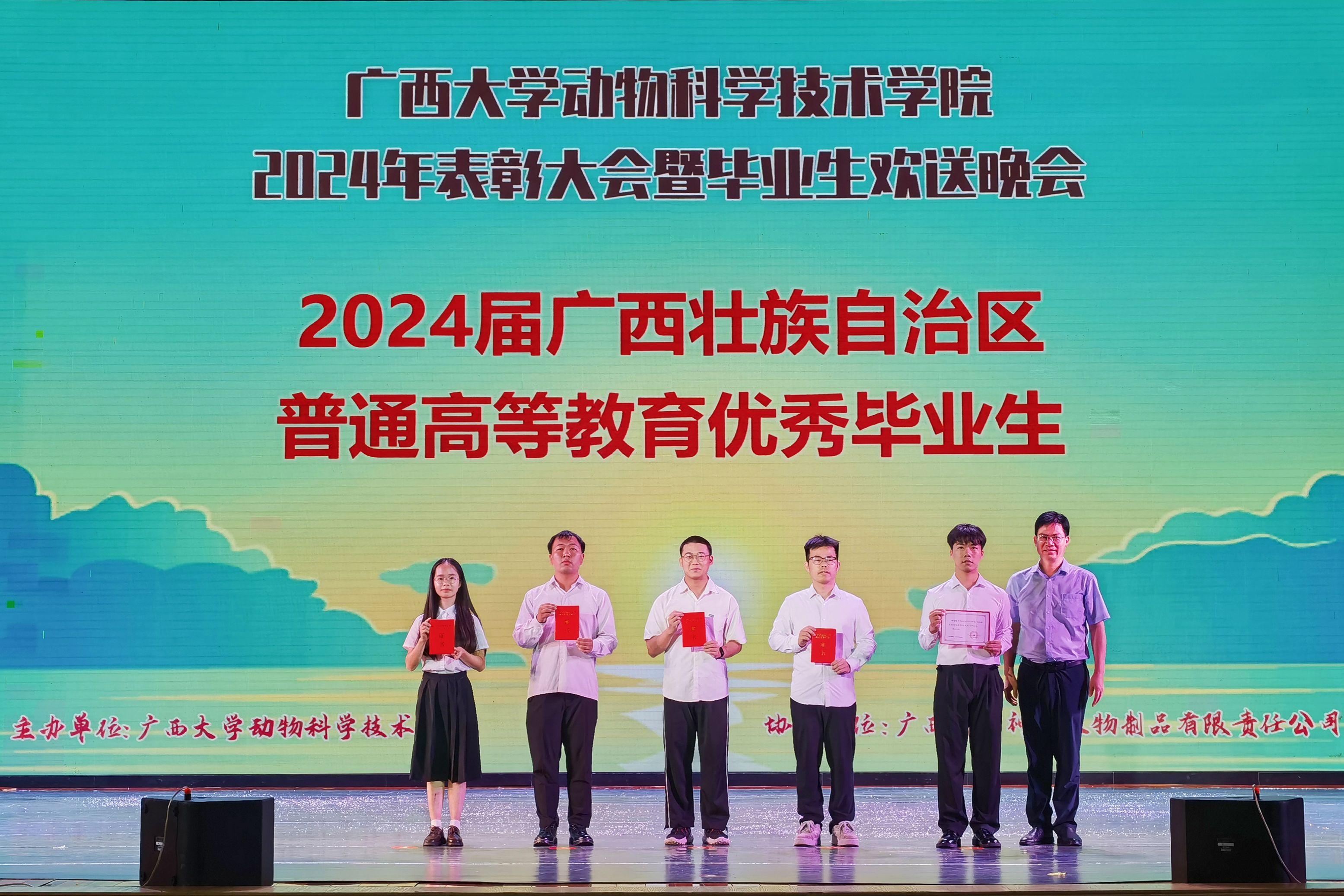 6月16日晚上,WilliamHill中文官网“出彩动科,点赞动科”2024年表彰大会暨毕业生欢送晚会在大礼堂举行。威廉希尔WilliamHill原副董事长、著名动物繁殖专家卢克焕,威廉希尔WilliamHill原副董事长、兽医学科带头人罗廷荣,校公司产品质量监控与评价中心主任梁微,校教务处副处长彭林欣,动物科学技术公司党委书记韦小强,经理陆阳清,党委副书记沙建,副经理何家康、韦祖樟、蒋钦杨,动物医学系主任陈樱,水产学科带头人潘英,团委书记李丽娜,团委副书记刘诚,辅导员崔月明、彭可可、邹佳琪、马朝阳,2005级员工、神九生物制品有限责任公司销售总监唐林生,以及WilliamHill中文官网1000余名师生欢聚一堂,共同参与此次活动。