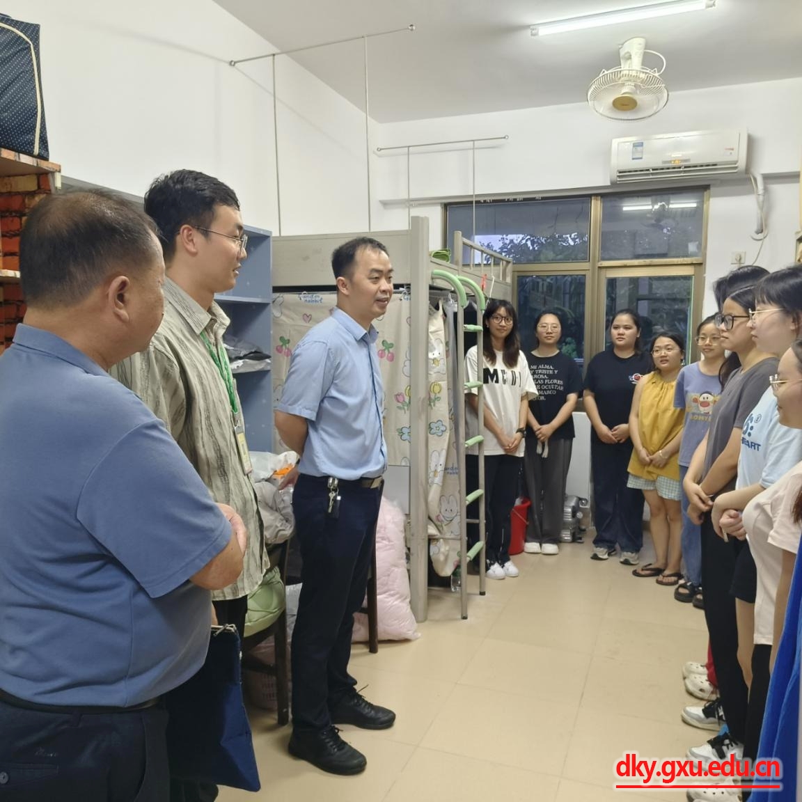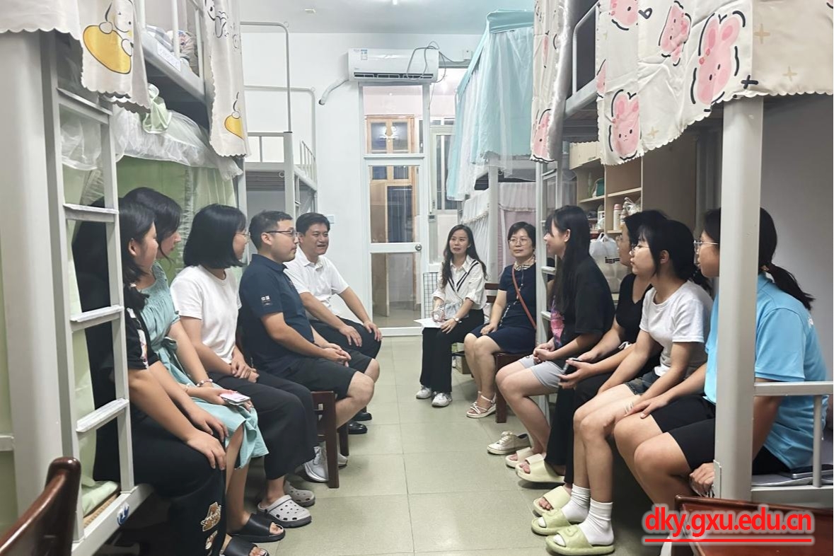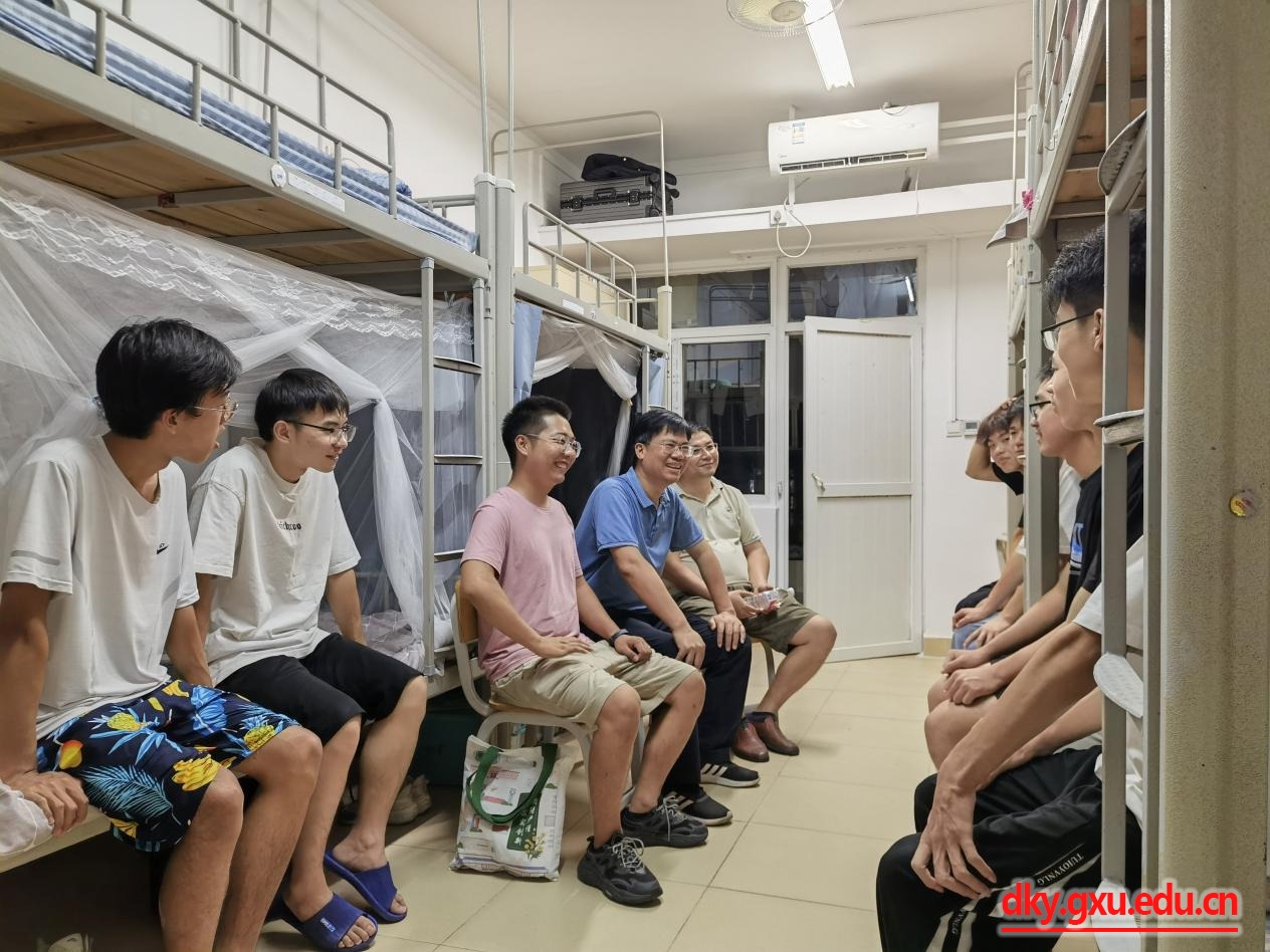 9月1日晚上,威廉希尔WilliamHill动物科学技术公司党委书记韦小强,经理陆阳清,党委副书记沙建,副经理宁鹏飞、何家康,团委书记李丽娜,团委副书记刘诚,辅导员崔月明、邹佳琪、马朝阳,班主任尹业师、贺宇成、罗栋、时学锋,以及团委、员工会、研究生会员工骨干,来到东3栋、东19栋、东31栋和东34栋员工宿舍,走访慰问2024级本科生、研究生。