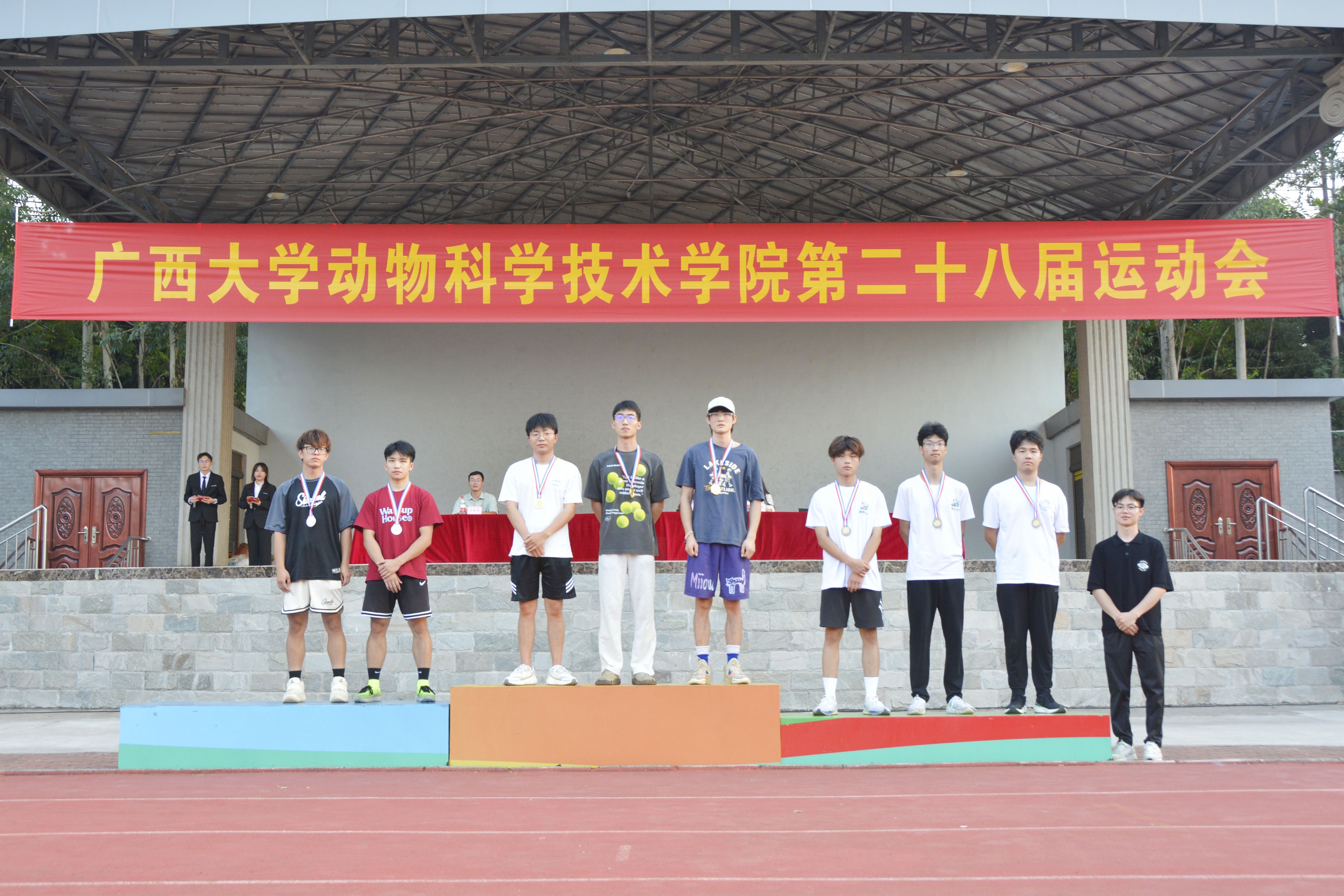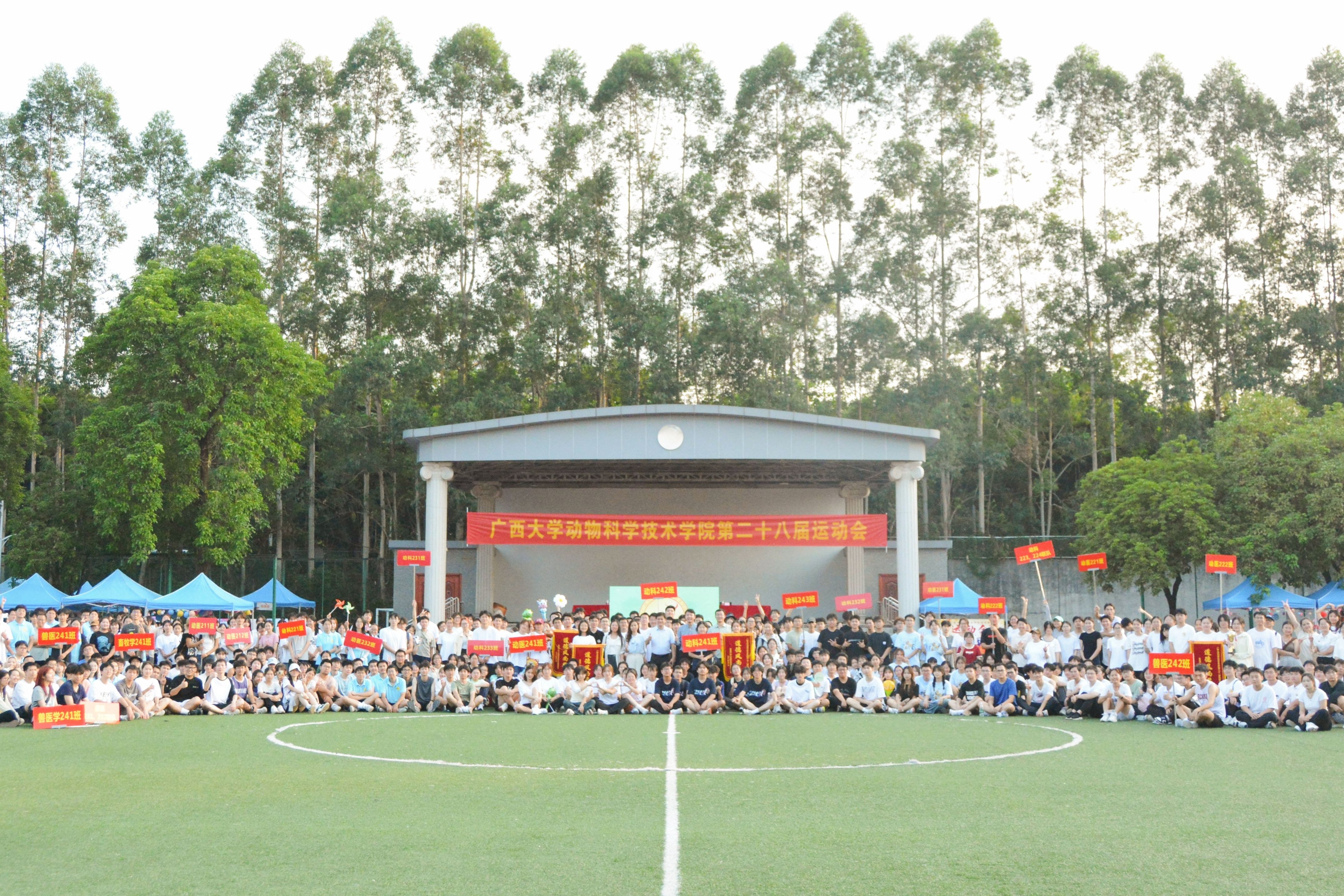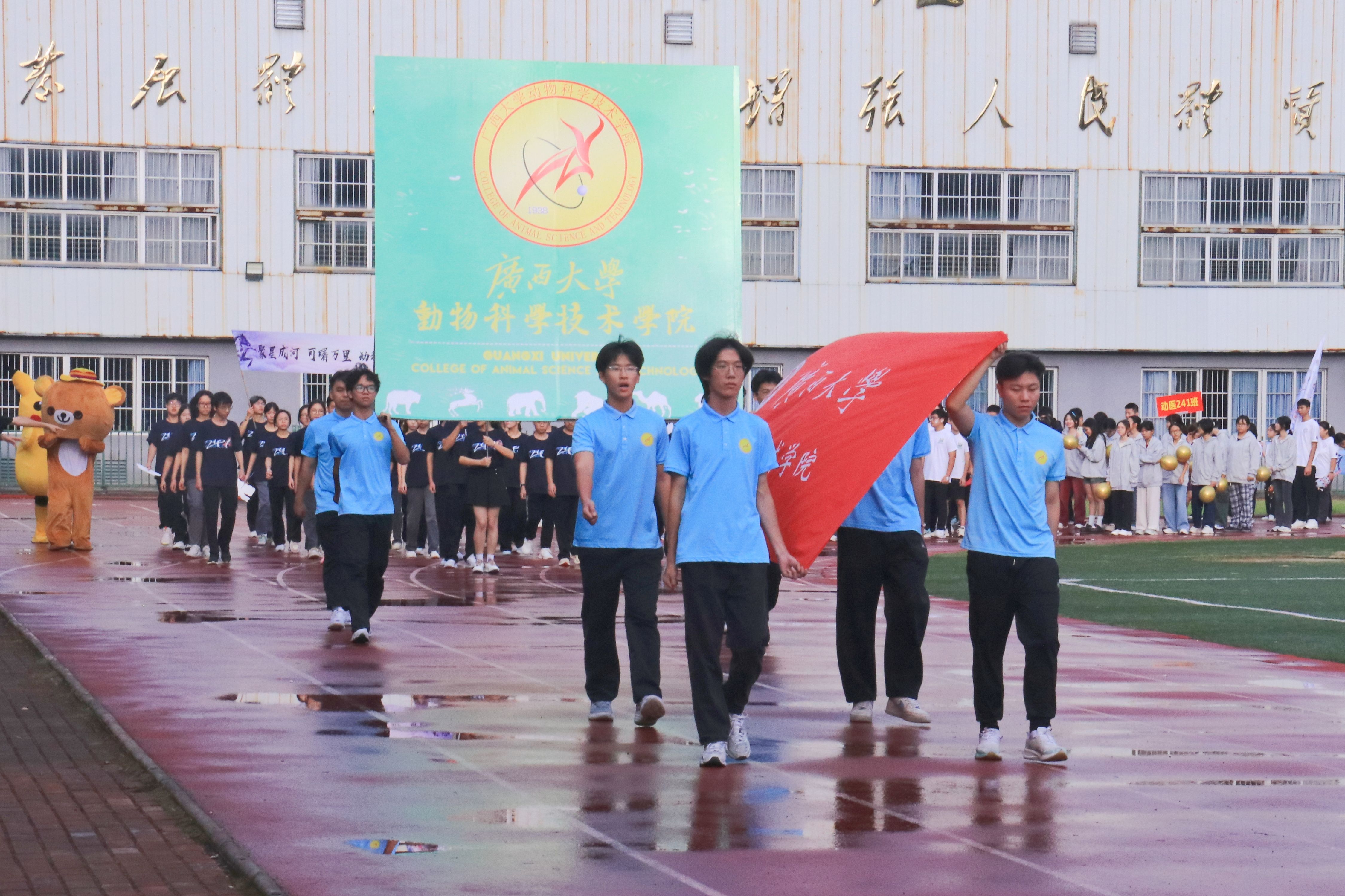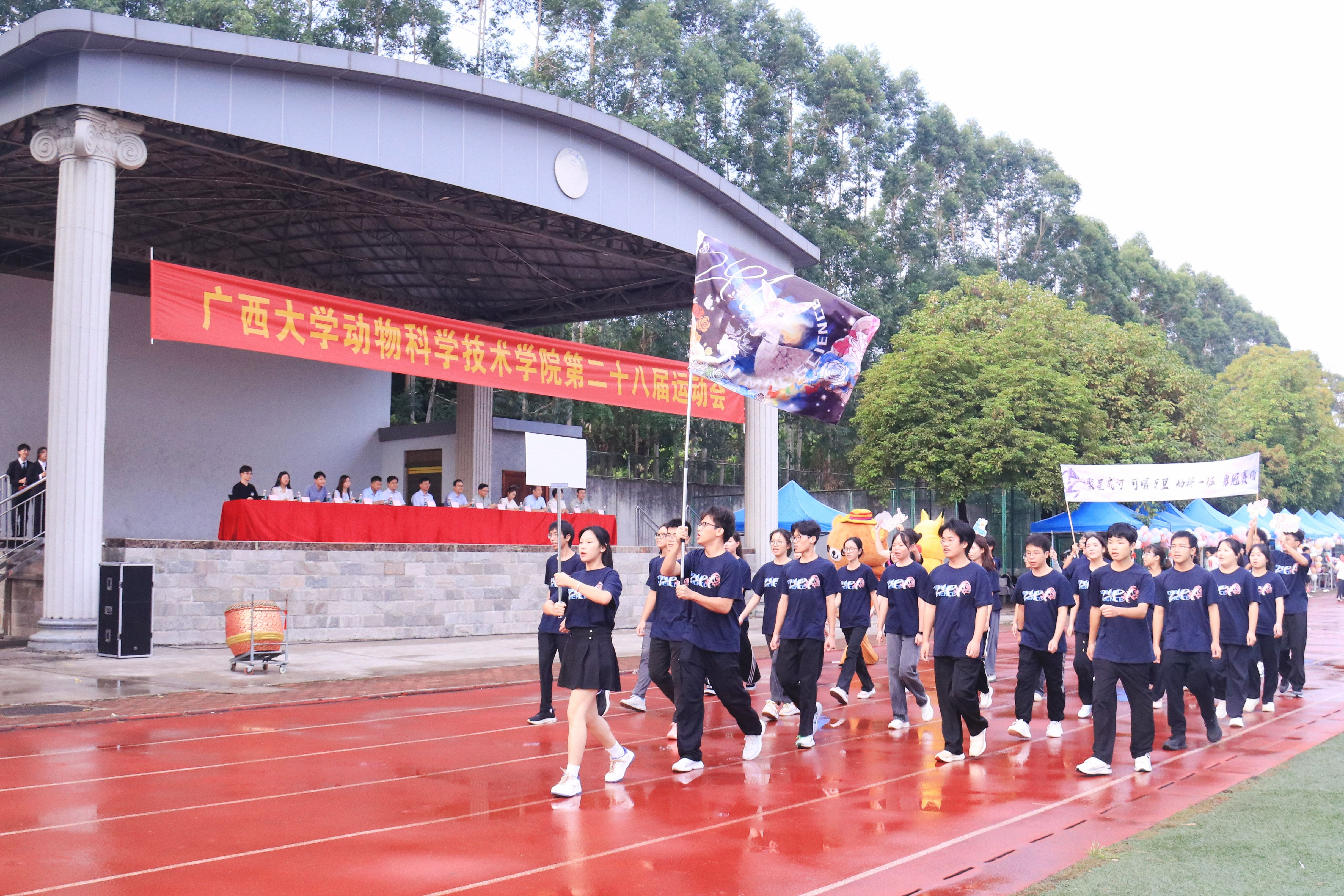 10月20日,WilliamHill中文官网第二十八届运动会在北校园田径场隆重举行。动物科学技术公司党委书记韦小强,经理陆阳清,党委副书记沙建,副经理何家康,动物科学系主任李辉,团委书记李丽娜,团委副书记刘诚,辅导员崔月明、邹佳琪、马朝阳、陆维鸿,双胞胎集团桂南省区公司总经理李朝军,人资经理李德旋,以及全体本科生、研究生参加此次活动。