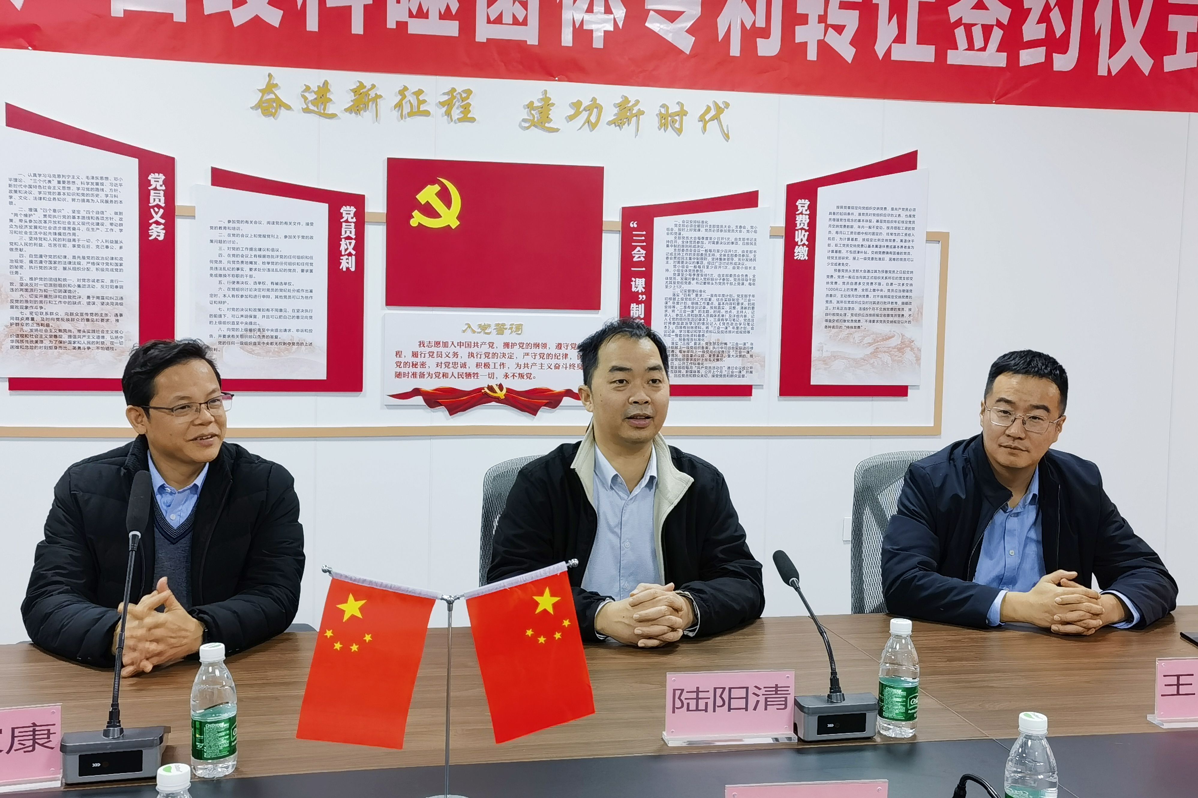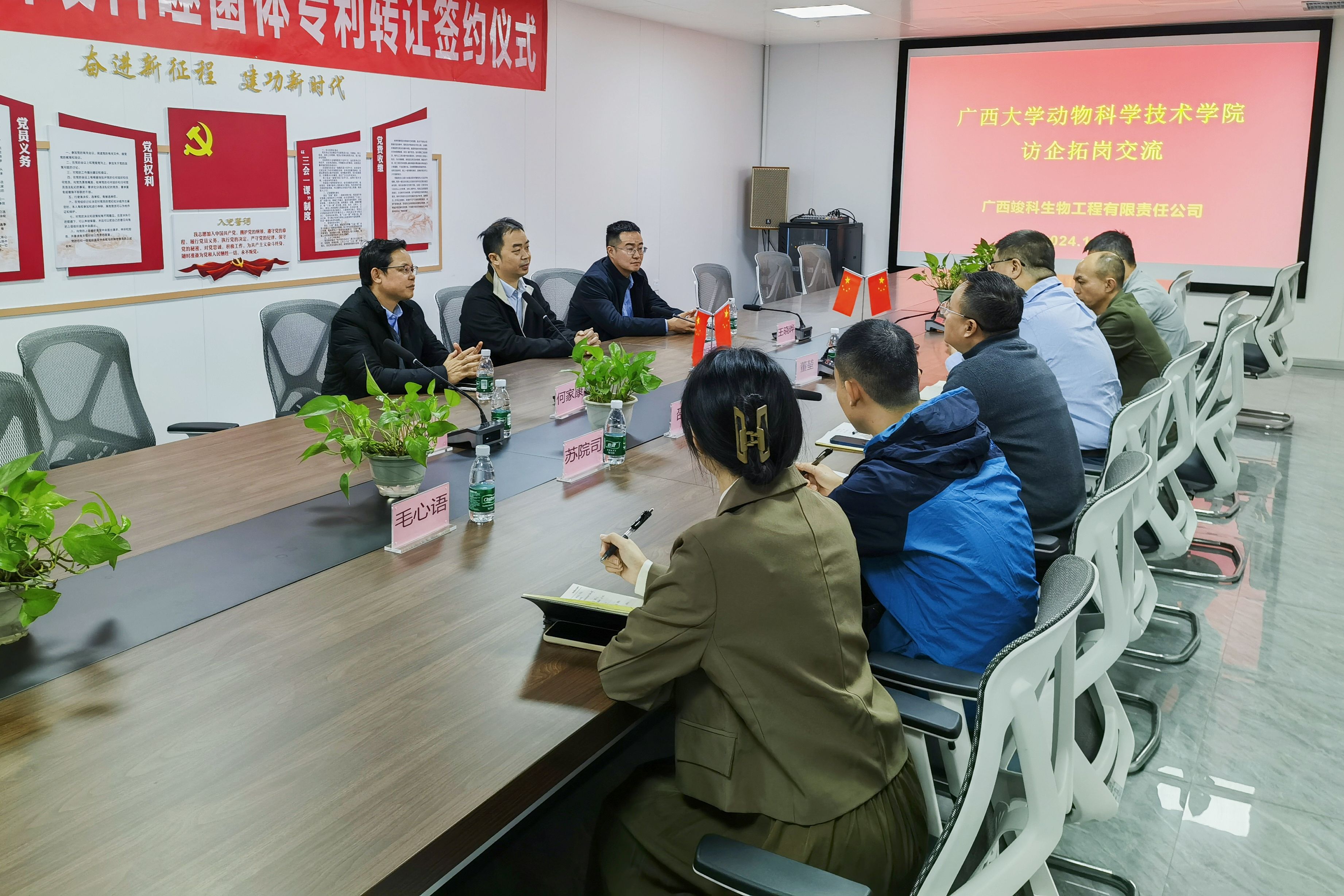 12月24日,WilliamHill中文官网经理陆阳清,副经理何家康,专任教师王晓晔,辅导员刘诚等一行4人前往广西竣科生物工程有限公司开展访企拓岗,并举行专利转让签约仪式。