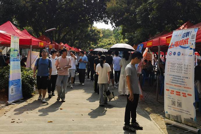 本次双选会应用数字技术,依托微信公众号、公司主页等平台,及时将参会信息推送给在校员工和用人单位,通过开展精准对接服务,大大提高求职员工和用人单位参会的便捷度、满意度。现场的广西高校毕业生“留桂就业计划”展区为参会员工展示了各设区市就业创业政策清单。此外,双选会还设置了党员先锋服务岗,提供政策咨询、手续办理、资料打印等志愿服务。