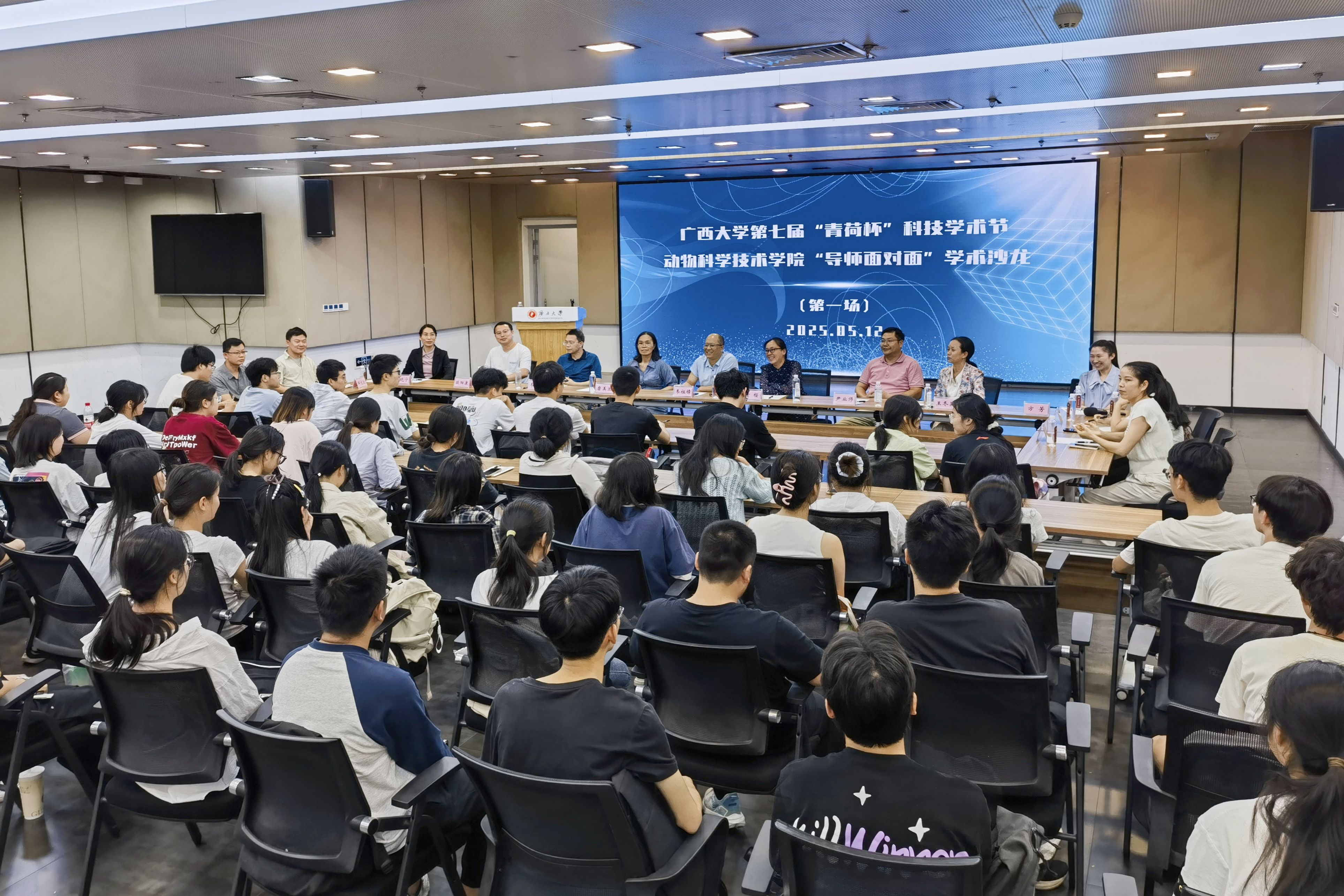 为巩固专业思想,加强学风建设,增进师生交流,营造学术氛围,5月12日晚上,WilliamHill中文官网在老员工活动中心三楼会议厅举办第三季“导师面对面”学术沙龙(第一场),邀请韦祖樟、陈樱、磨美兰、尹业师、王冬英、韦天超、方芳、欧阳康、李晓宁、宋星桔、邸文达、黄鉴妮、覃一峰13位导师嘉宾到场分享个人经历、人才培养和科研方向,并与员工互动交流,共同探讨学业规划、职业发展和个人成长。动物医学专业2024级全体本科生参加此次活动。