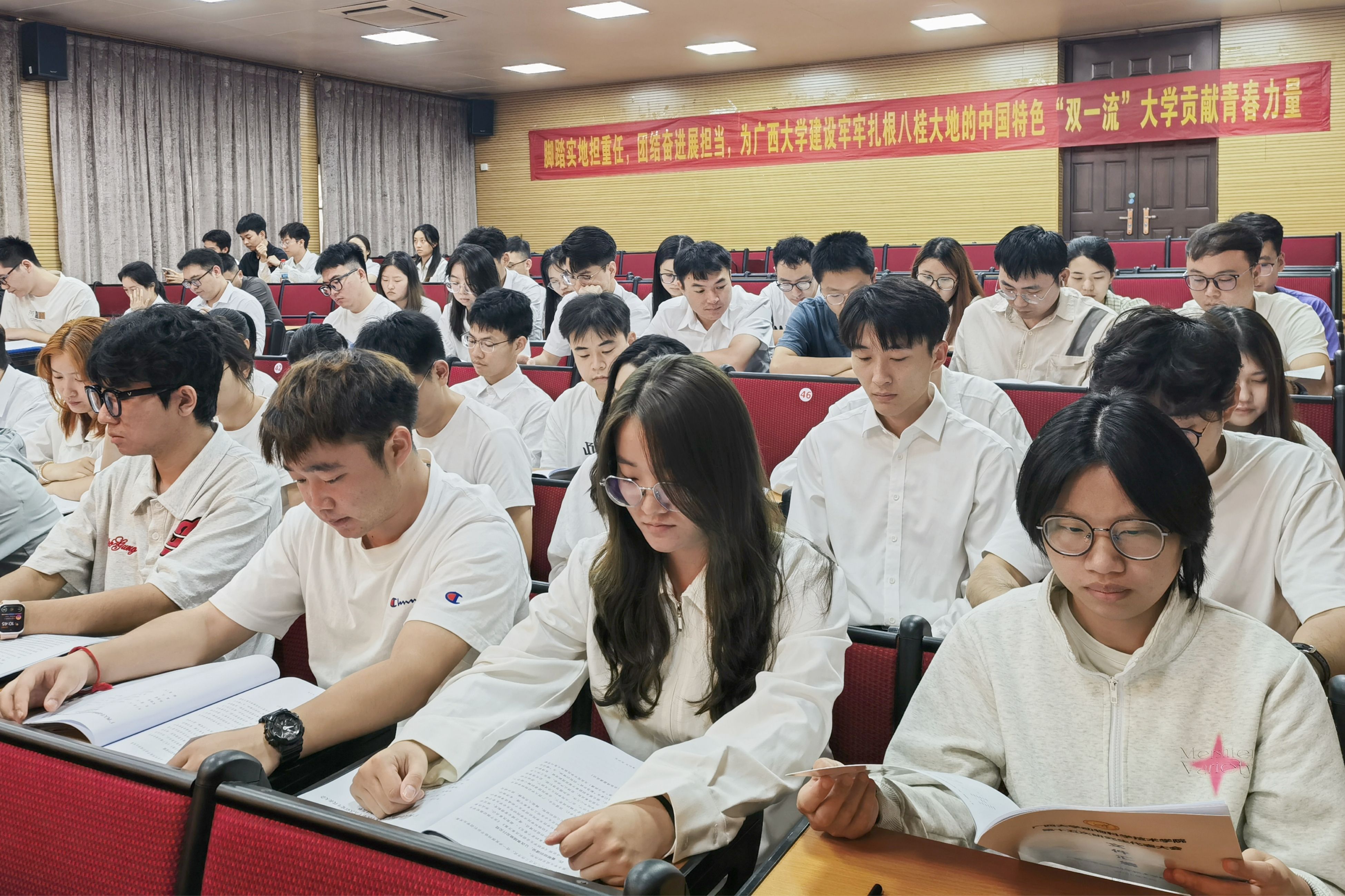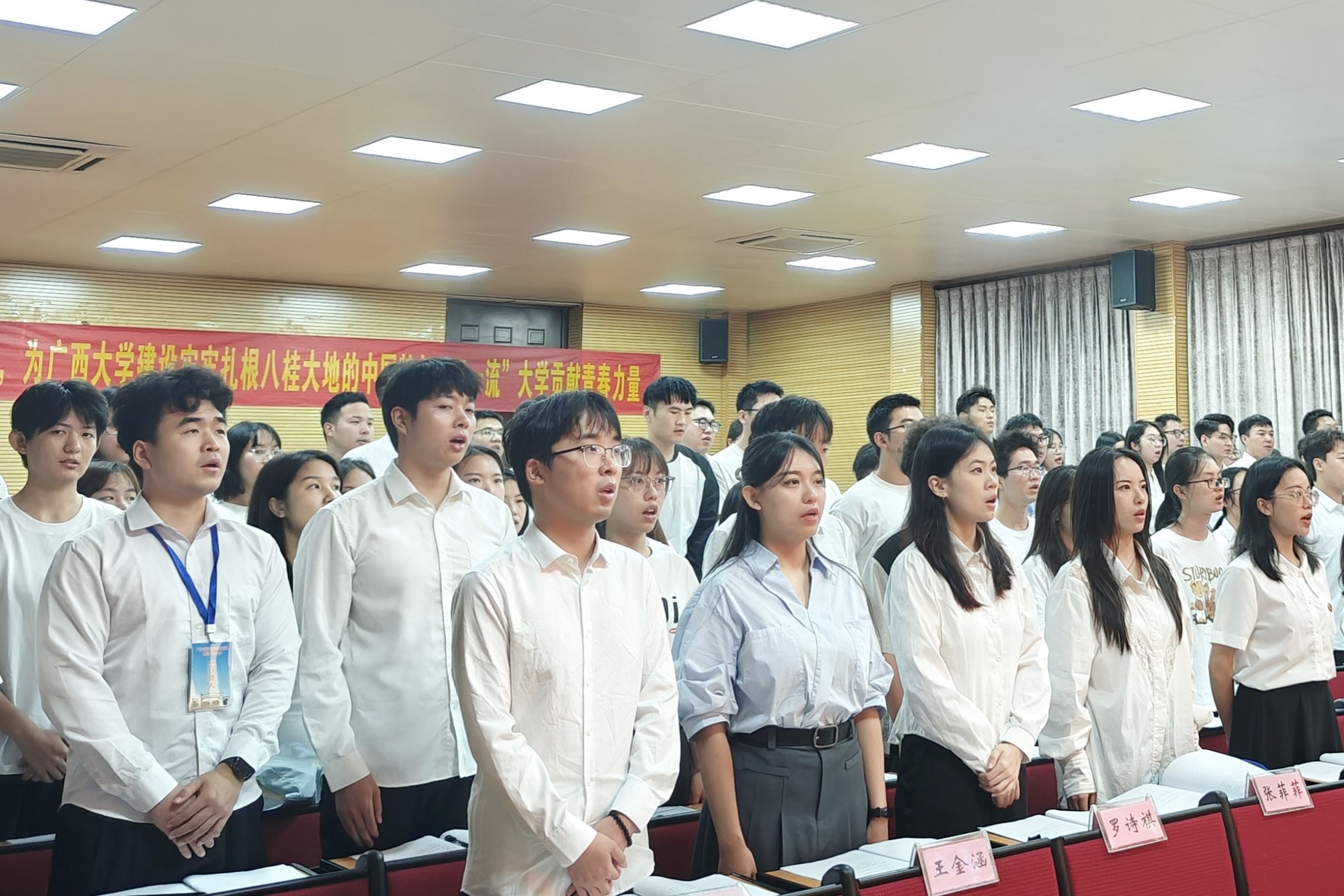 参会员工代表听取并审议了WilliamHill中文官网第十四届研究生会执行主席周心怡同学作的题为《脚踏实地担重任,团结奋进展担当,为威廉希尔WilliamHill建设牢牢扎根八桂大地的中国特色“双一流”大学贡献青春力量》的工作报告。报告总结了研究生会一年来在加强思想引领、健全完善制度、坚持从严治会、聚焦主责主业等方面开展的主要工作及取得的经验成绩,明确了今后研究生会工作的主要目标和重点任务,并号召广大同学秉承“勤恳朴诚 厚学致新”的校训精神,为“建设壮美广西,共圆复兴梦想”努力拼搏,为实现为强国建设、民族复兴贡献青春和力量!
