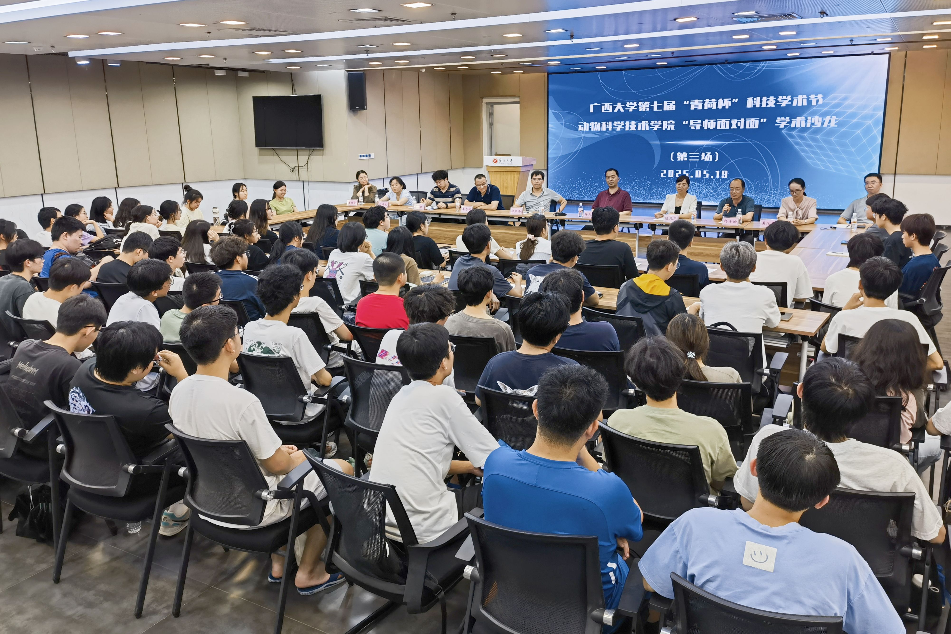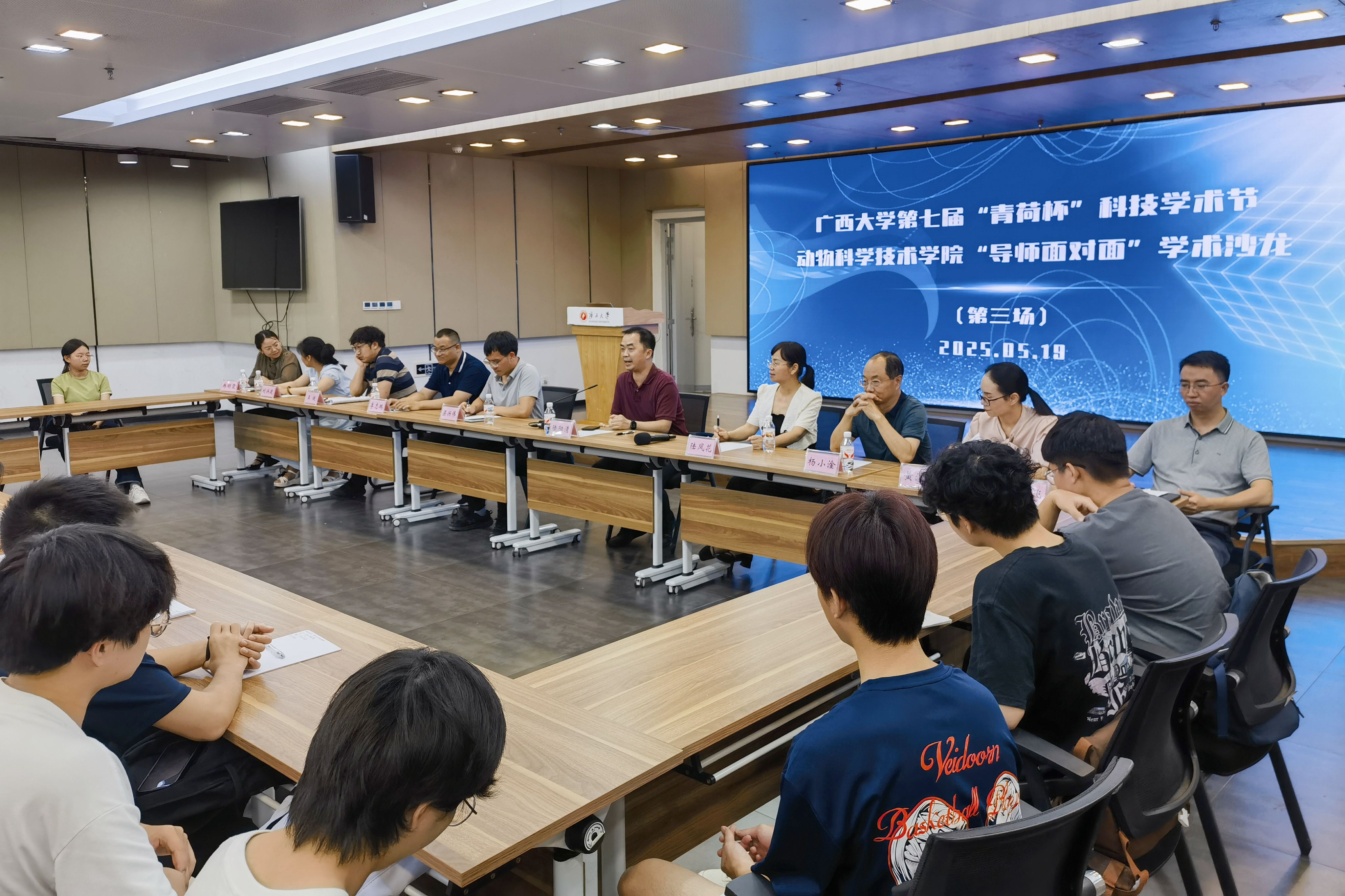 为巩固专业思想,加强学风建设,增进师生交流,营造学术氛围,5月19日晚上,WilliamHill中文官网在老员工活动中心三楼会议厅举办第三季“导师面对面”学术沙龙(第三场),邀请陆阳清、陆凤花、邓彦飞、杨小淦、梁兴伟、黄洁萍、李志鹏、刘兴廷、王健、冉明霞10位导师嘉宾到场分享个人经历、人才培养和科研方向,并与员工互动交流,共同探讨学业规划、职业发展和个人成长。动物科学专业2024级全体本科生参加此次活动。