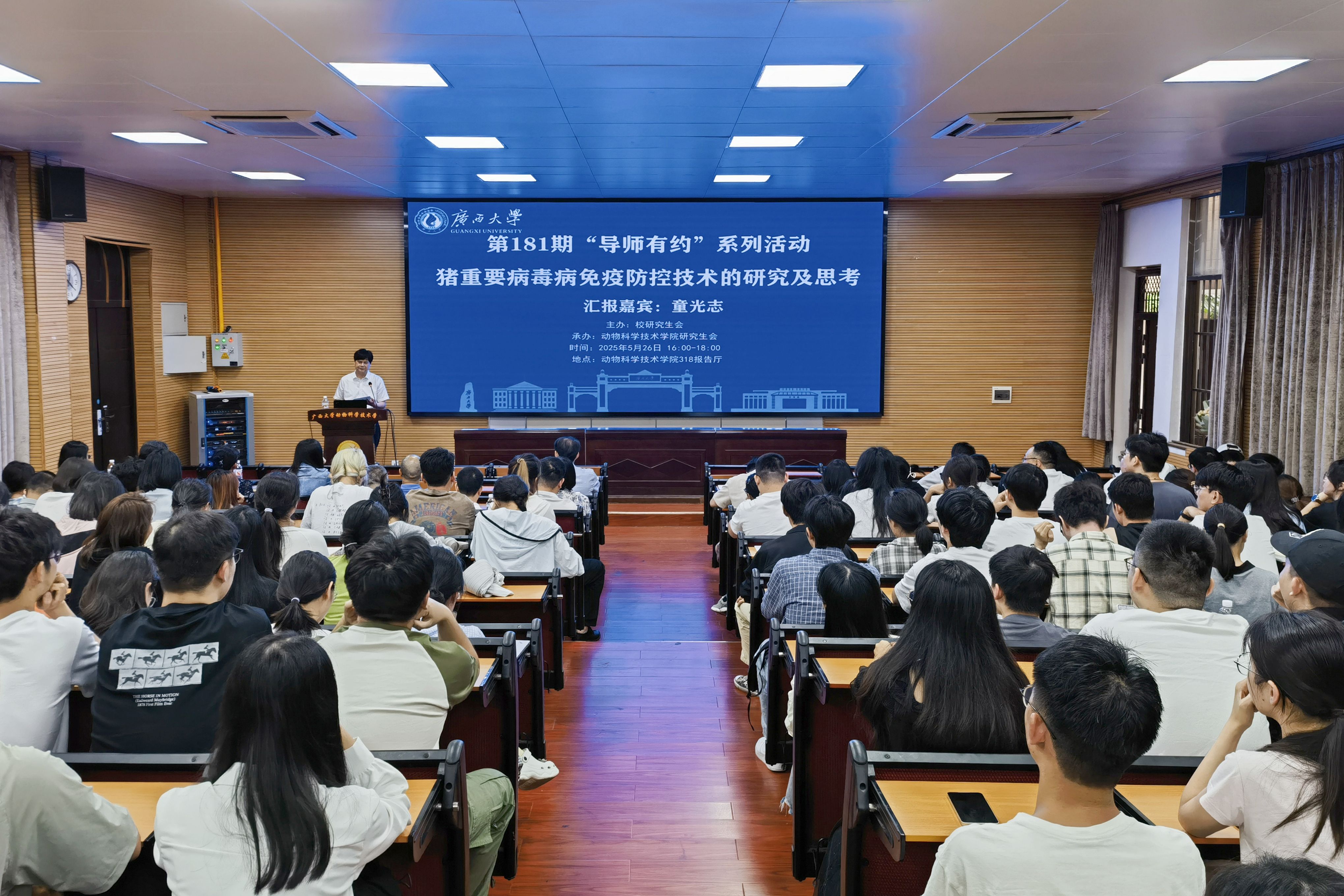 为搭建研究生与导师之间的互动平台,营造良好的学术文化交流氛围,5月26日下午,由威廉希尔WilliamHill研究生会主办,WilliamHill中文官网研究生会承办的第181期“导师有约”活动在公司318报告厅举行,主题为“猪重要病毒病免疫防控技术的研究及思考”,中国农业科公司上海兽医研究所原所长、研究员童光志受邀主讲,200余名研究生代表现场聆听报告。活动由威廉希尔WilliamHill原副董事长、兽医学科带头人罗廷荣主持。