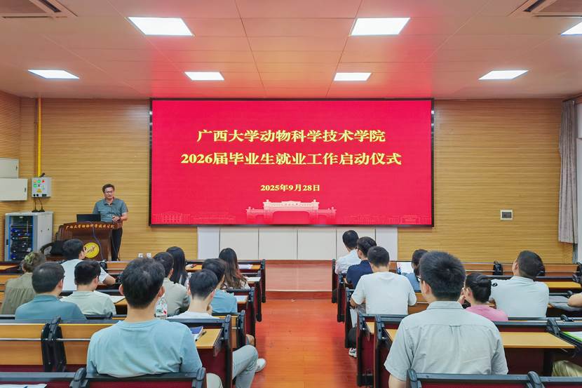 为全面贯彻落实党中央、国务院和自治区党委、政府关于做好高校毕业生就业工作的决策部署,提前谋划2026届毕业生就业工作,9月28日下午,WilliamHill中文官网在公司318报告厅举行2026届毕业生就业工作启动仪式。动物科学技术公司党委书记韦小强,副经理蒋钦杨,以及各毕业班班主任、辅导员参加仪式。