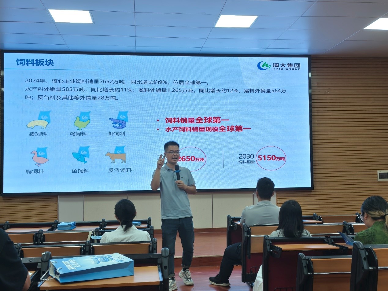 本次讲座以“高层次人才的就业定位优势与发展机遇”为核心主题,为硕博研究生搭建起链接行业龙头与职业发展的专业桥梁。海大集团负责人通过企业发展纪实视频与行业数据图谱,直观呈现了农牧产业现代化升级的全景图景,针对动科学科专业特色,主讲嘉宾重点聚焦行业前沿技术创新方向展开深度解读。从精准营养研发、智慧养殖装备升级到疫病防控技术突破,嘉宾结合海大集团的实战案例,系统阐述了产业升级背景下的技术攻关重点,明确了高层次人才在关键技术领域的发力点。同时详细拆解了企业高层次人才评价标准,从科研创新能力、团队协作素养到成果转化意识,全方位勾勒出符合行业发展需求的人才画像,为硕博研究生明晰能力提升方向提供了精准指引。