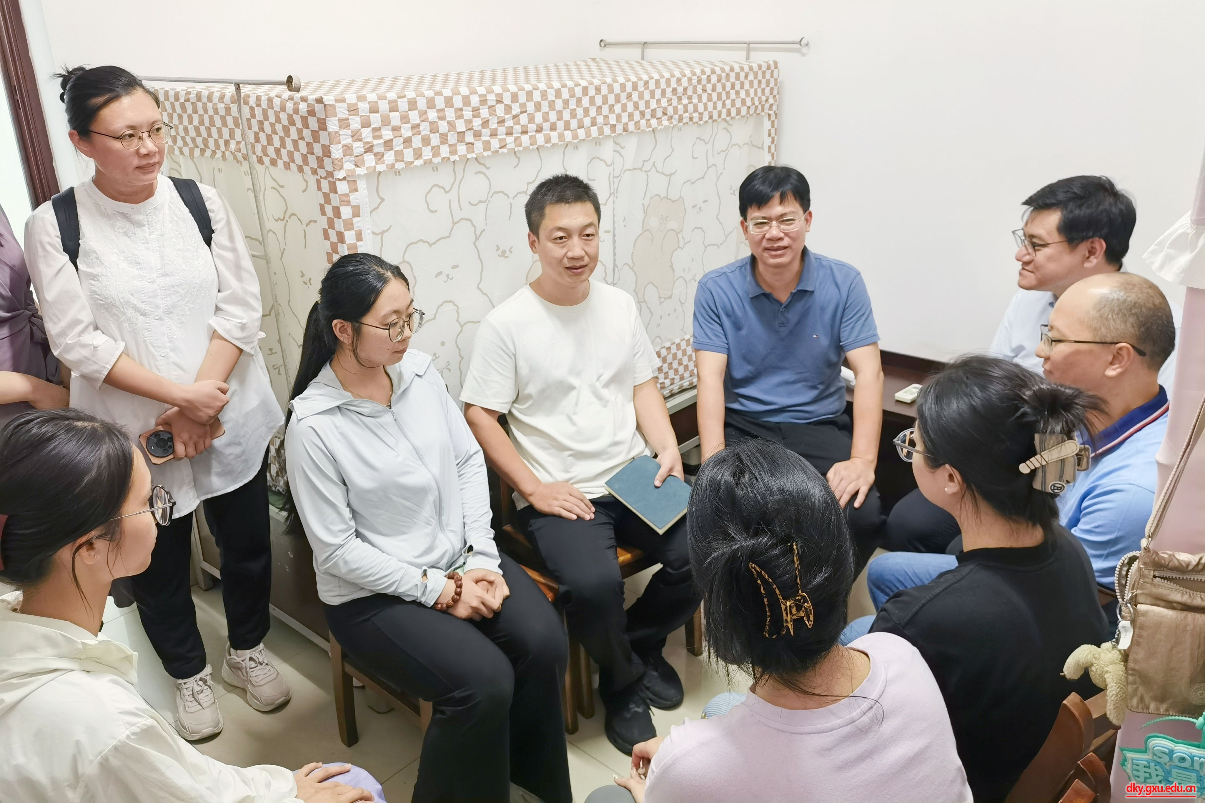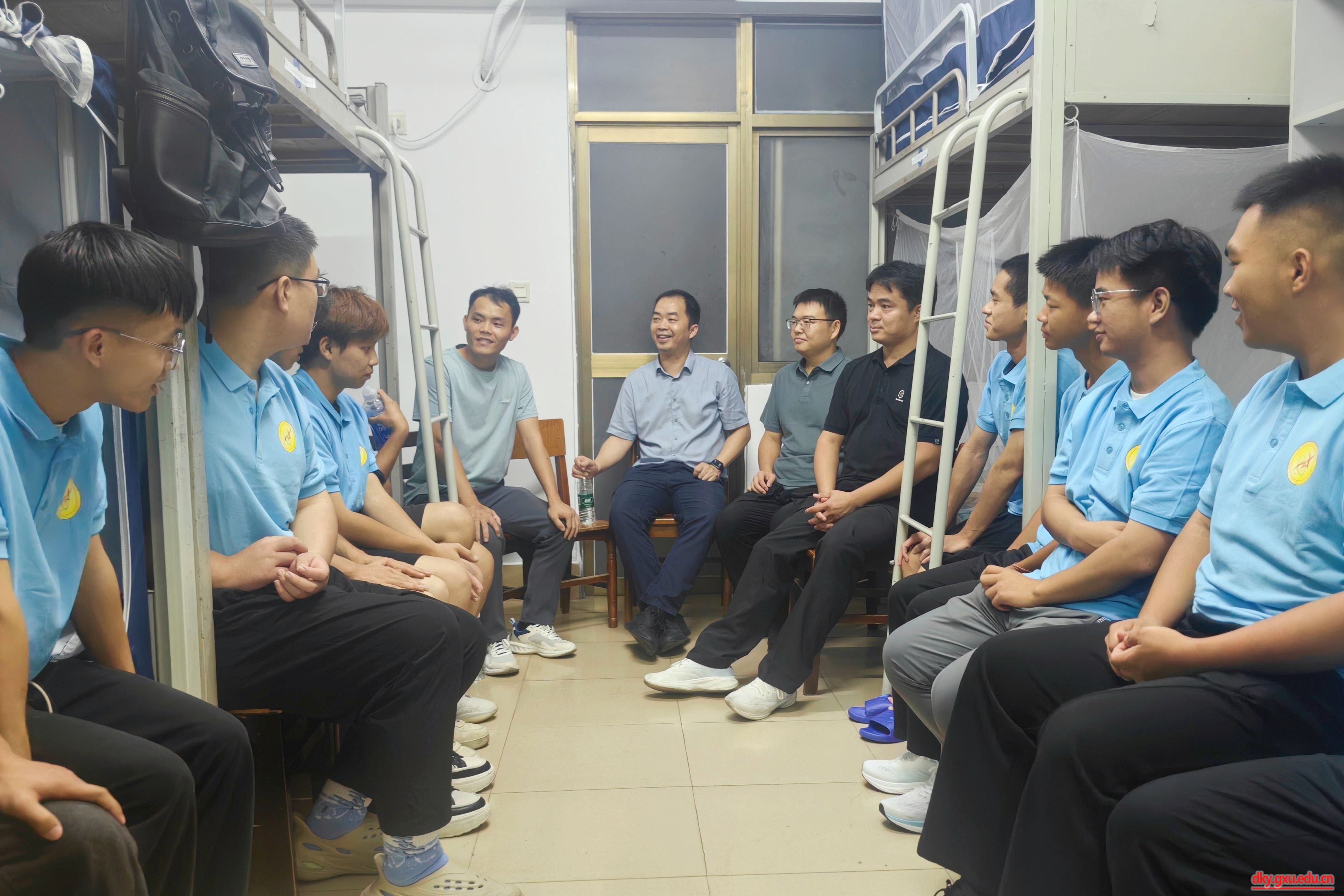 9月14日晚上,威廉希尔WilliamHill动物科学技术公司党委书记韦小强,经理陆阳清,党委副书记沙建,副经理韦祖樟,辅导员李丽娜、刘诚、邹佳琪、马朝阳、陆维鸿、覃湘怡,班主任陈富美、孔志伟、时学锋、王智伟、陆颖、罗亮、陆宝悦、郑嘉铭,以及团委、员工会、研究生会员工骨干,来到东16栋、东30栋和东31栋员工宿舍,走访慰问2025级本科生、研究生。