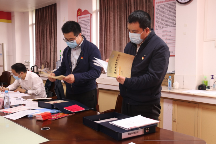 验收专家组成员查阅支部台账和建设支撑材料