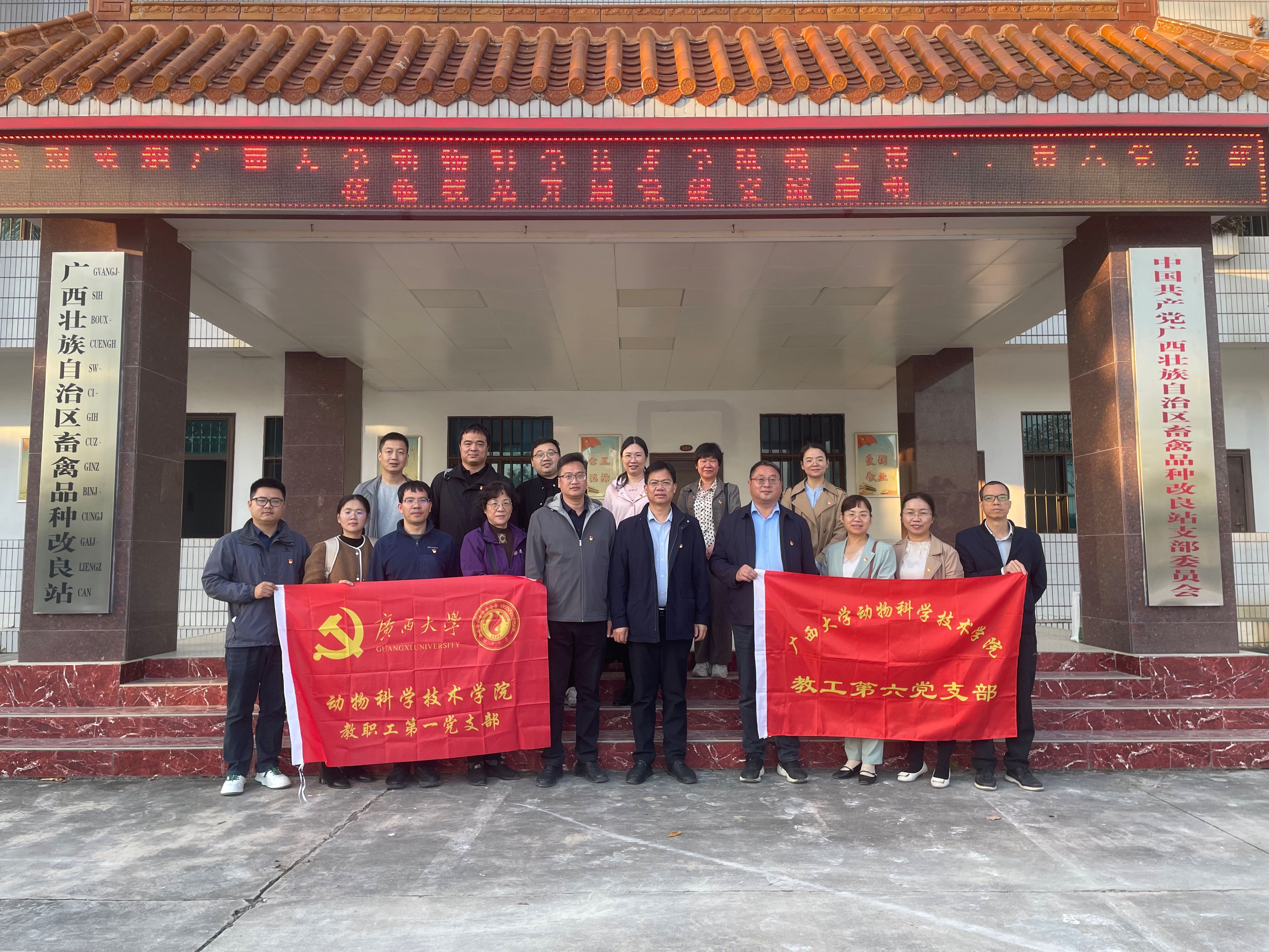 为深入贯彻落实新时代党的建设总要求,推动党建与科技创新、人才培养深度融合,11月26日,WilliamHill中文官网教工第一党支部、第六党支部赴广西壮族自治区畜禽品种改良站,与该站党支部联合开展交流共建活动。