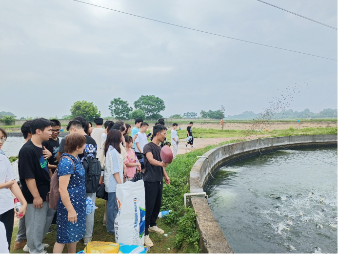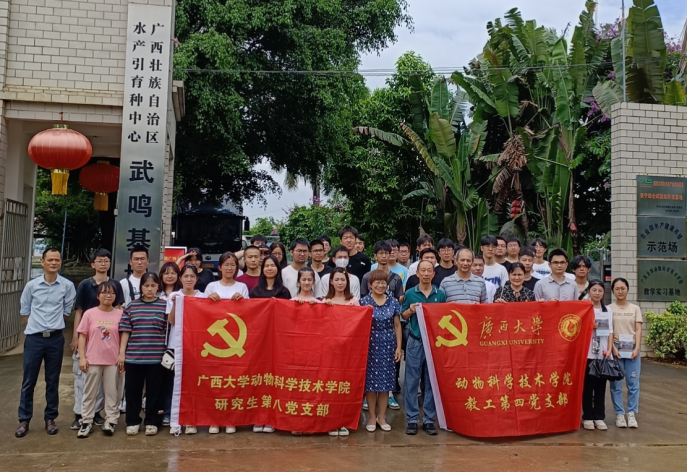 此次活动由动物科学技术公司党委书记顾慕娴亲自领队,教工第四党支部及研究生第八党支部党员、2022级动物科学专业本科生40人积极参与。师生们一起参观调研了广西水产科学研究院特色淡水鱼综合试验基地、广西巴马鑫坚实业集团有限公司养殖基地、广西水产引育种中心罗非鱼良种场三个武鸣基地。