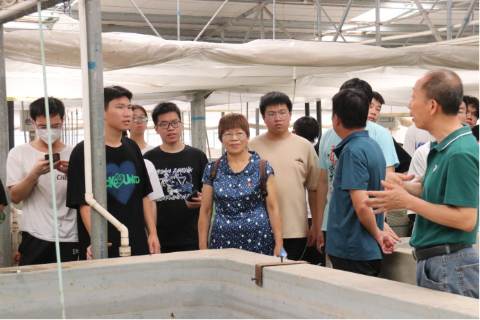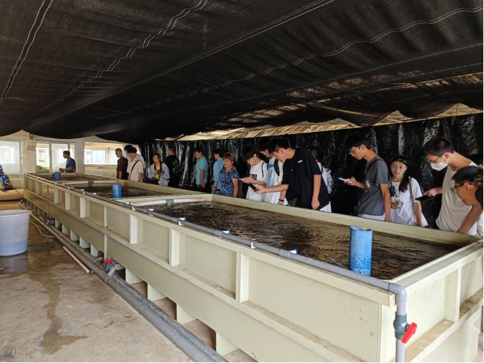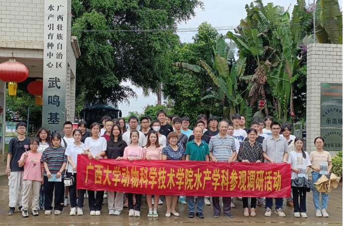 2023年6月9日上午,由动物科学技术公司党委书记顾慕娴亲自带队,水产学科带头人潘英教授及青年教师欧伟豪博士协助组织,带领2022级动物科学专业本科生40人到武鸣水产基地依次参观调研了广西水产科学研究院特色淡水鱼综合试验基地、广西巴马鑫坚实业集团有限公司养殖基地、广西水产引育种中心罗非鱼良种场等3个武鸣基地。