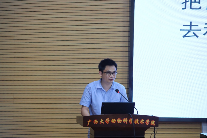 随后,广西水产科学研究院经理罗永巨、广西芳草安桂生物科技有限公司总经理欧阳贤华、南宁海大生物科技有限公司水产线总经理黄东三位西大水产优秀员工,分别从广西水产行业概况、未来发展趋势、个人成长经历等多角度多方面为同学们传递水产行业的详实信息。水产青年教师欧伟豪博士也分享了水产特色班小班教学的优势,直言个性化教育的重要性,希望能把西大水产传承和发展壮大起来。最后,在本科生导师制课程中选择了水产教师作为导师的2019级动科本科生周尚永同学,水产211班的在读研究生吴耀庭和杜安凤同学为同学们介绍自己在水产养殖专业学习中精彩丰富的学习和实习经历,并热切欢迎大家加入水产大家庭。